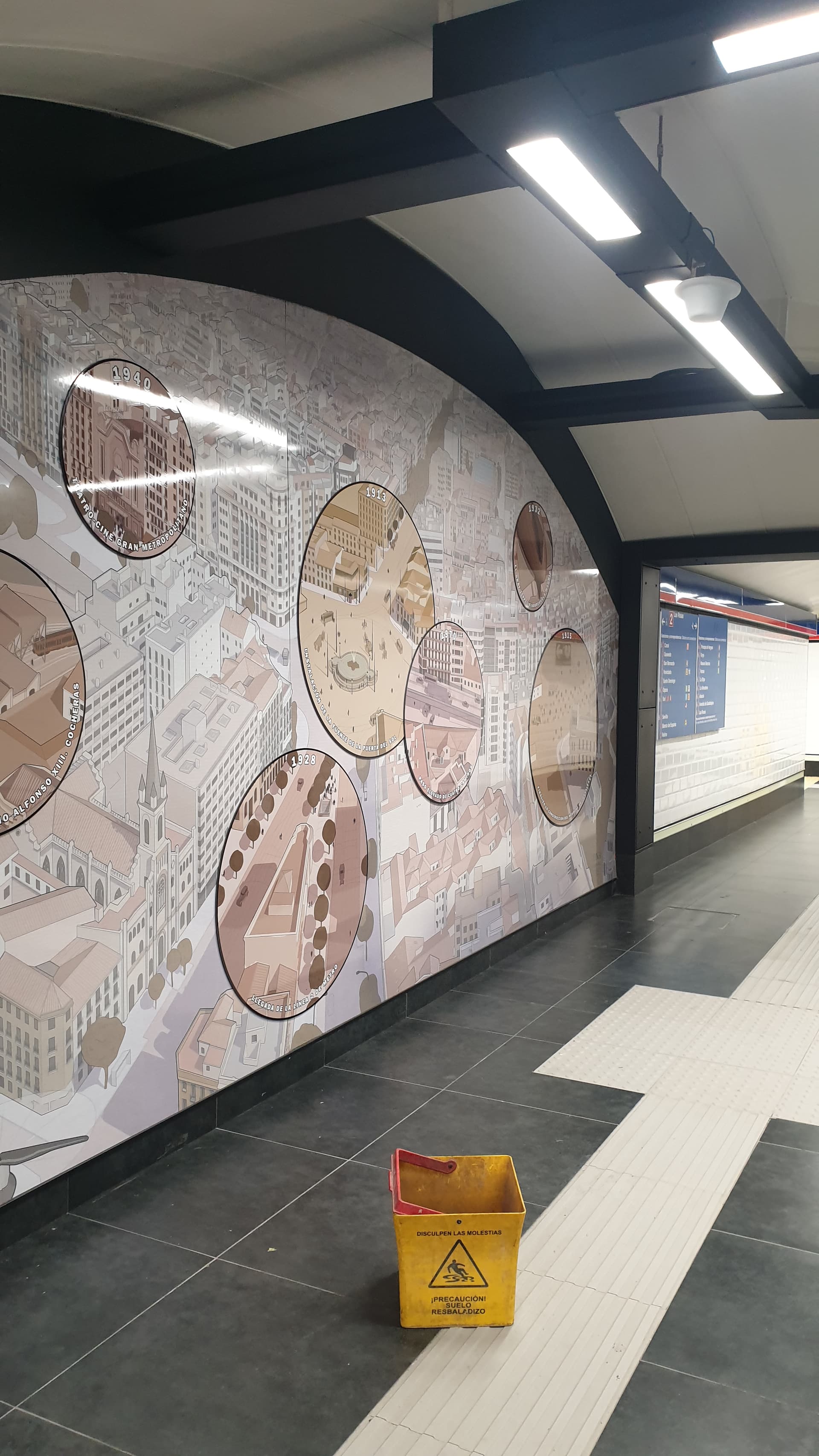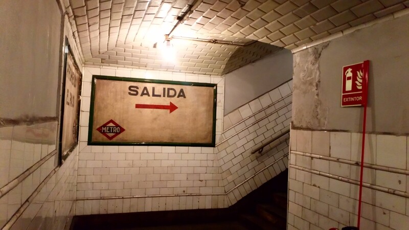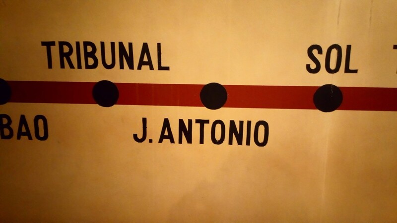 se ha conservado el cartel indicativo donde la estación de “Gran Vía” había cambiado de nombre por la de Avda José Antonio,