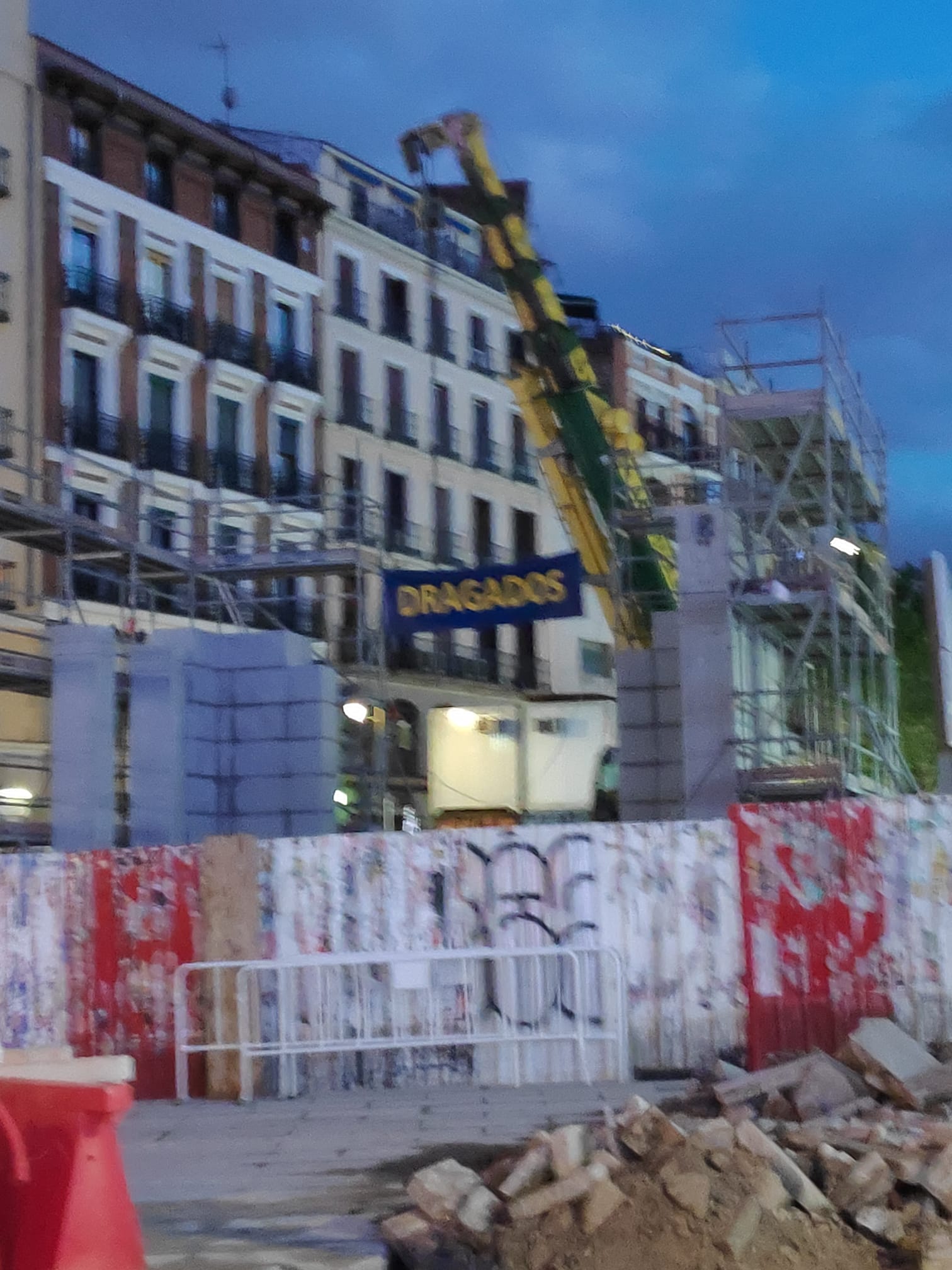 Un par de fotos nocturnas de las obras del templete. (Perdón por la calidad, pero es lo que tienen las fotos nocturnas…). Os animo a que os paséis, en persona impresiona bastante, fijaos en los andamios para haceros una idea de las dimensiones.