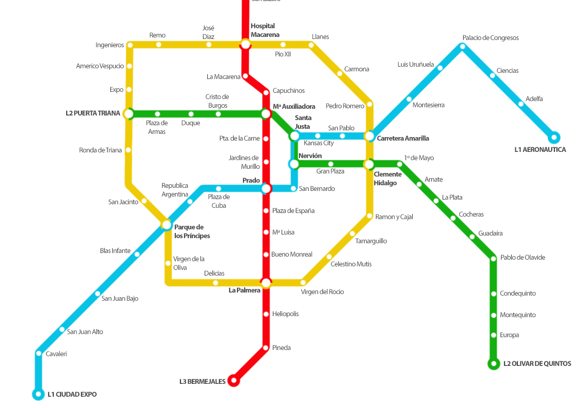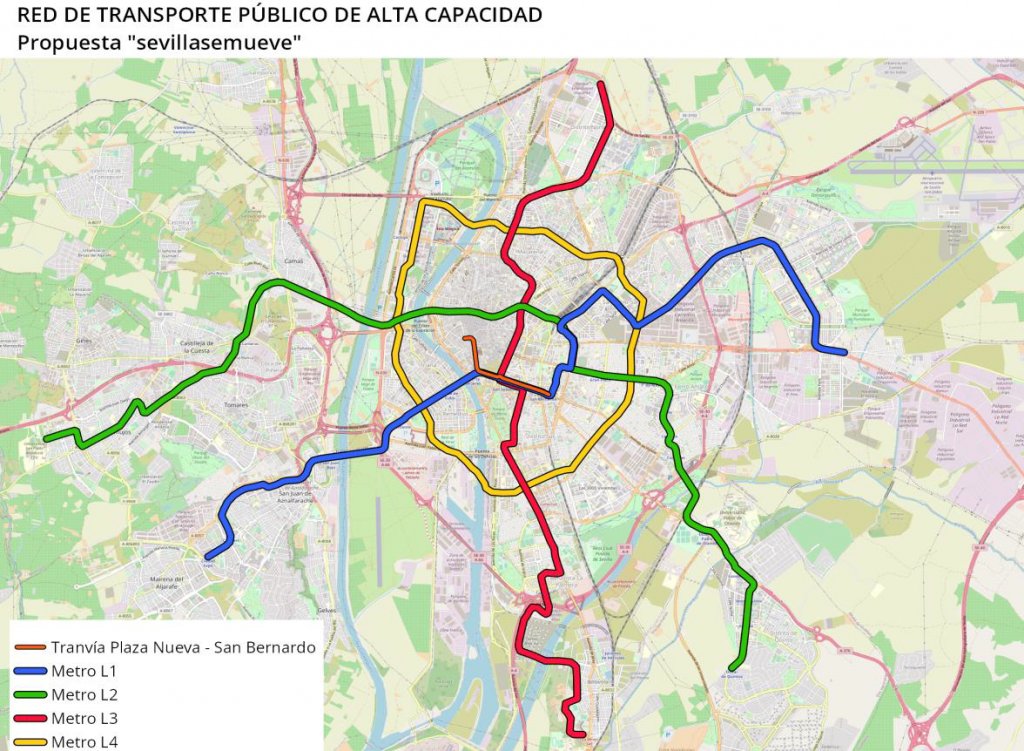Completamente de acuerdo, es la propuesta que hizo Sevillasemueve, pero no parece que haya voluntad política para ello. Aquí una versión un poco más actualizada, con la L2 hasta el Aljarafe y la L3 hasta Bellavista.