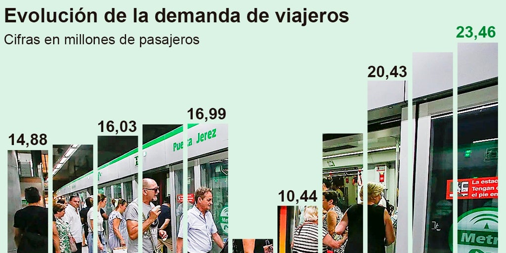 A pesar de la saturación que viene sufriendo desde hace años, la única línea de metro sevillana sigue aumentando viajeros. En octubre, es el metro de las grandes ciudades que más crece.