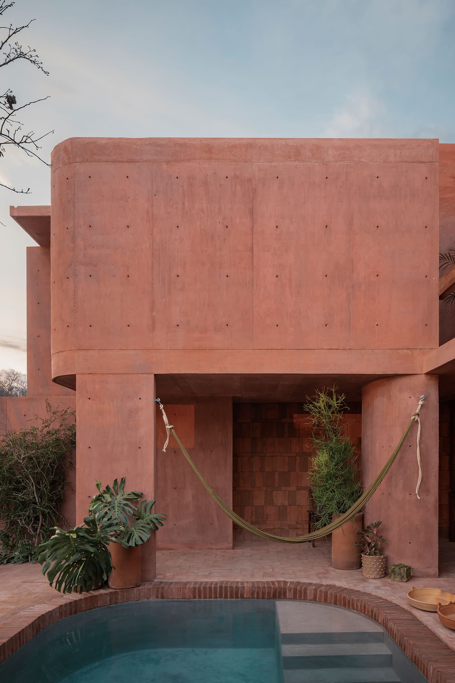 UN COLLAGE DE TEXTURAS Y MATERIALES NATURALES. CASA ROJA POR ÁNGEL GARCÍA ARQUITECTURA
