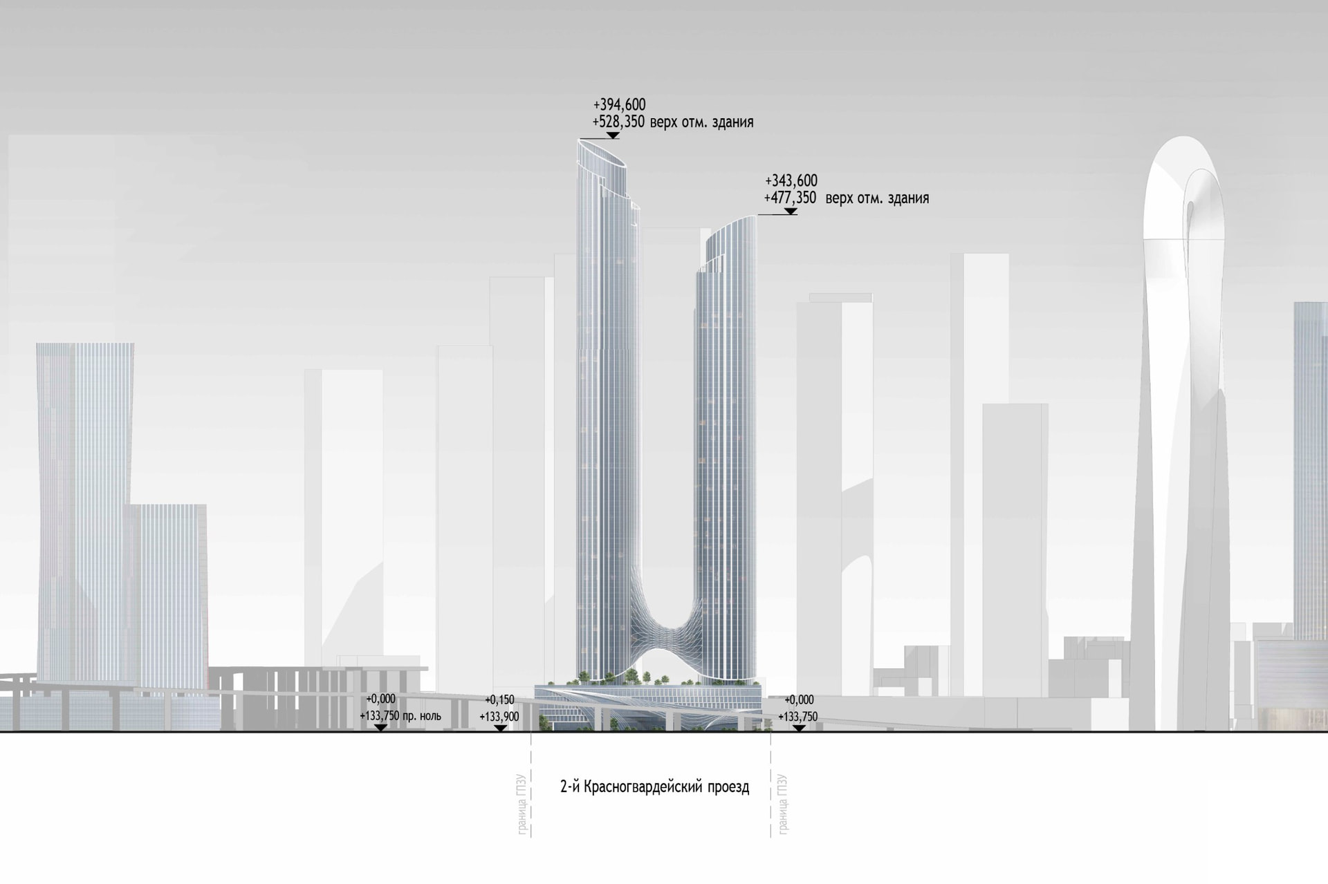 El centro de negocios tendrá una superficie total de 33.500 metros cuadrados. El proyecto se construirá a orillas del río Moscova, a poca distancia a pie de la estación de metro Terekhovo.