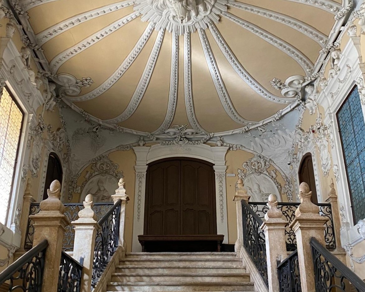 La antigua Biblioteca Provincial se asentaba sobre una parte expropiada y segregada del Palacio Episcopal, correspondiente principalmente con las zonas “menos nobles”: las cuadras, el pósito… Aunque también contenía una sala de audiencias (ya desaparecida) y una escalera monumental obra de Miguel Verdiguier (probablemente el elemento de mayor valor que conserva el edificio).