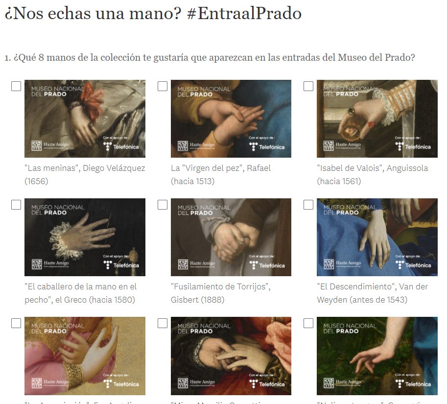 El Prado va a cambiar el diseño de sus entradas y ha habilitado una encuesta para ello. Los 8 modelos más votados serán los definitivos. Se puede votar aquí:
