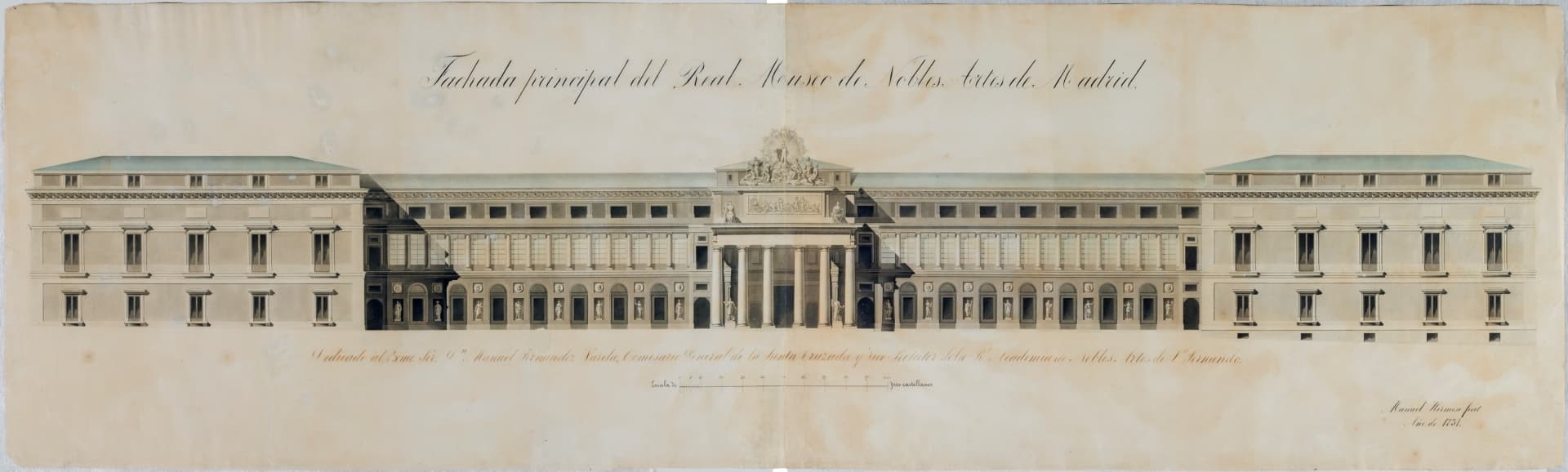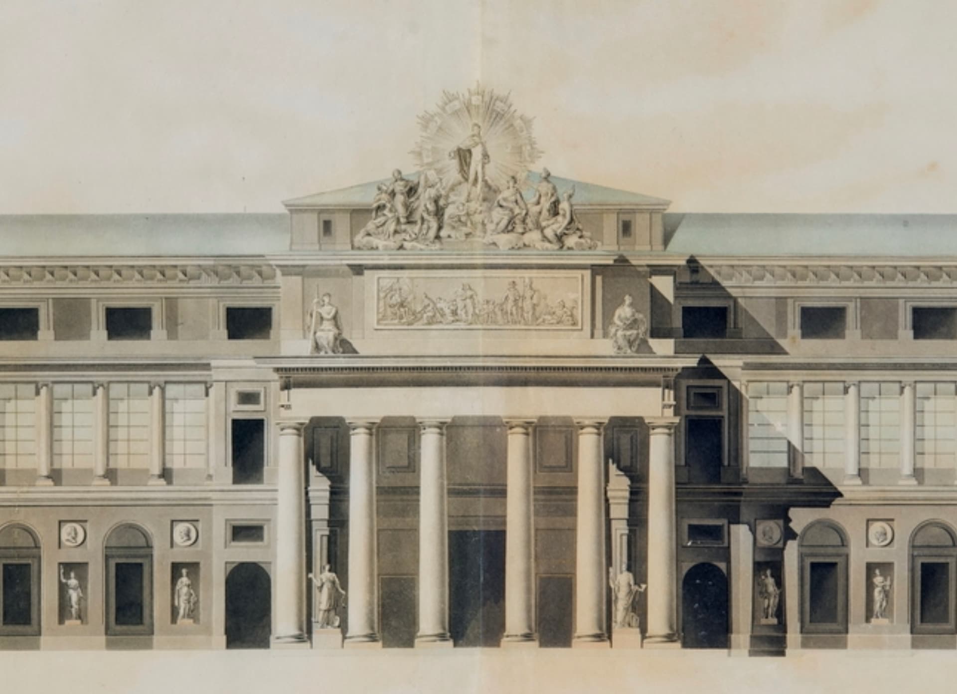 En la fachada del paseo del Pardo también se plantearon colocar un grupo escultórico coronando el entablamento