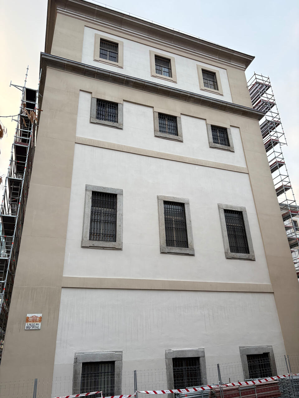 Están comenzando a retirar lonas en las partes de fachada ya restaurada. Se puede ver el aspecto final que tendrá el edificio Sabatini. Como era previsible (Patrimonio de por medio) no hay mucha variación respecto a cómo estaba, salvo la limpieza y quizá algo más de contraste entre molduras y paños de fachada