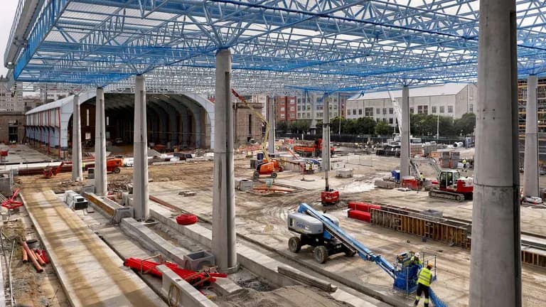El ADIF ha completado la estructura metálica que permite ampliar en 200 metros la cubierta actual y avanza en paralelo en la construcción de la playa de vías y la transformación del vestíbulo histórico