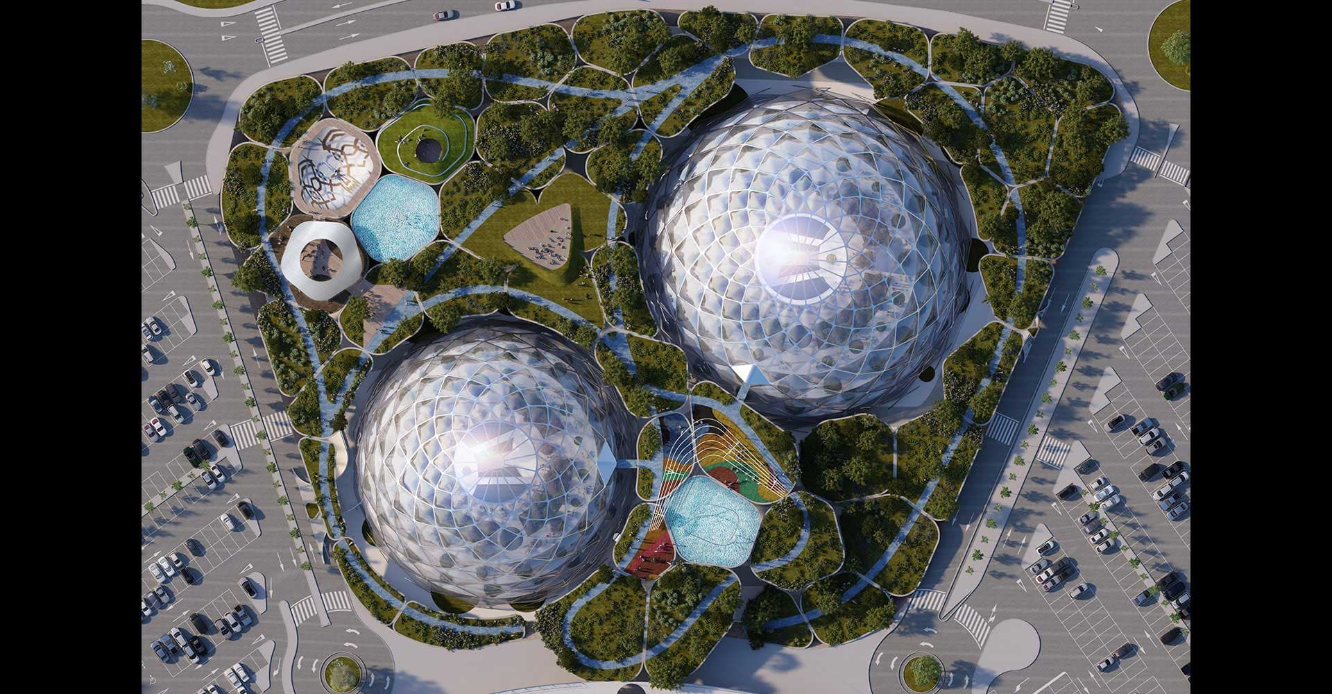 Por lo que parece según el render es el espacio central del parking entre las cuatro rotondas