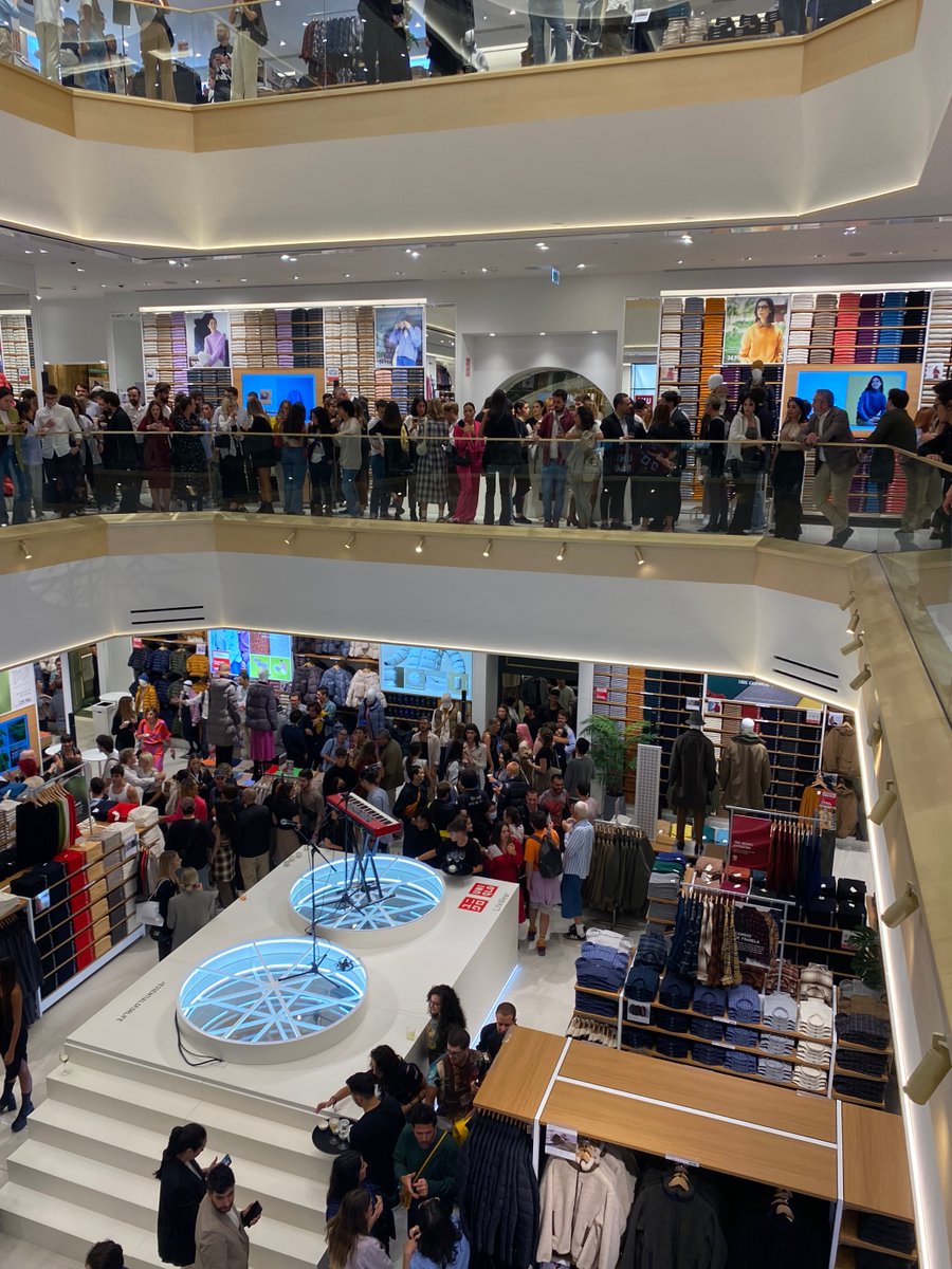 Estuve ayer y es un poco triste la verdad le falta luz como bien dice Mid the Gap y el contraste de ropa japo con el local…Mejor resuelto en su tienda de Serrano. Me gusta muchisimo mas la espanola Zara que esta justo en frente y por supuesto la de Plaza Espana, que es una autentica pasada.