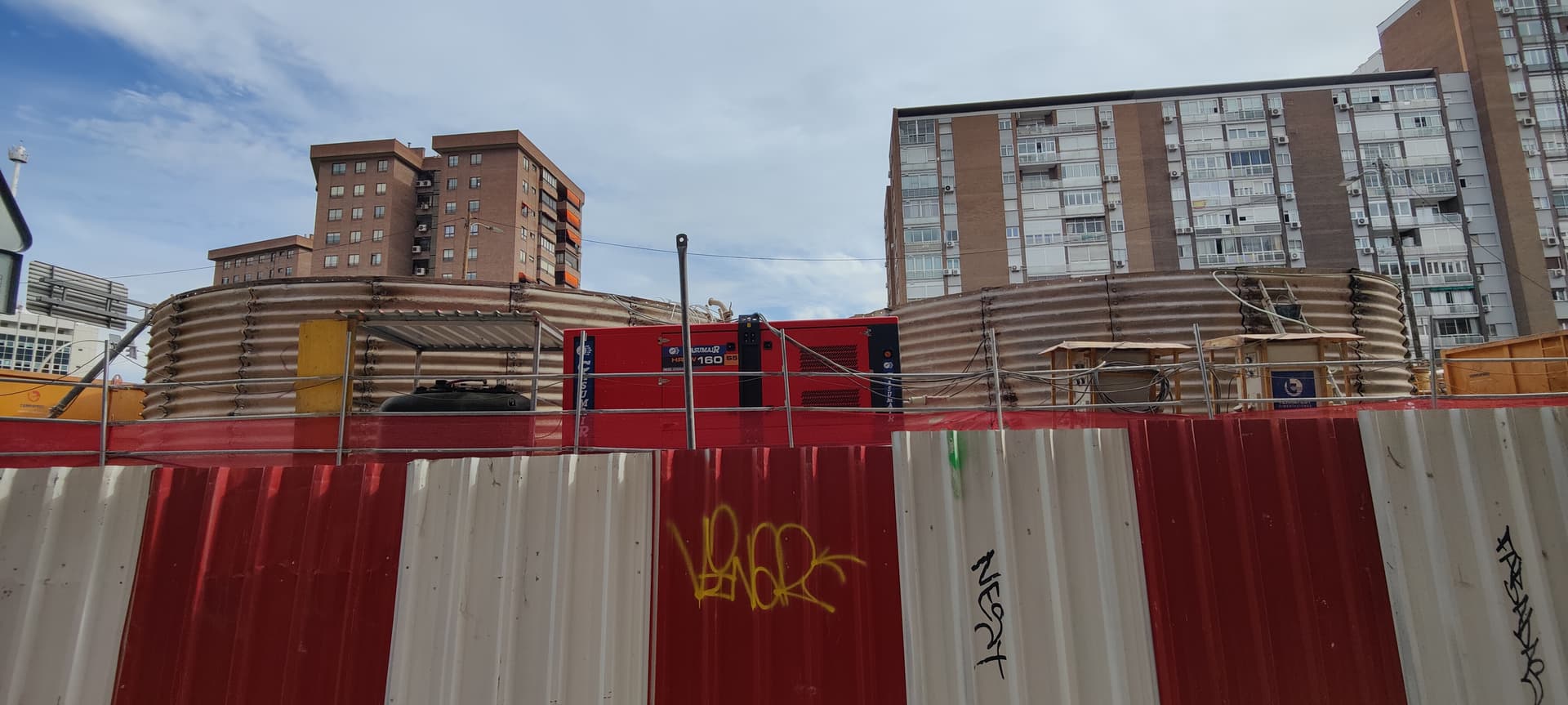 Tienen que hacer la caja de la estación de la línea 11, que es paralela a la Avda del Mediterráneo justo debajo de la plaza.
