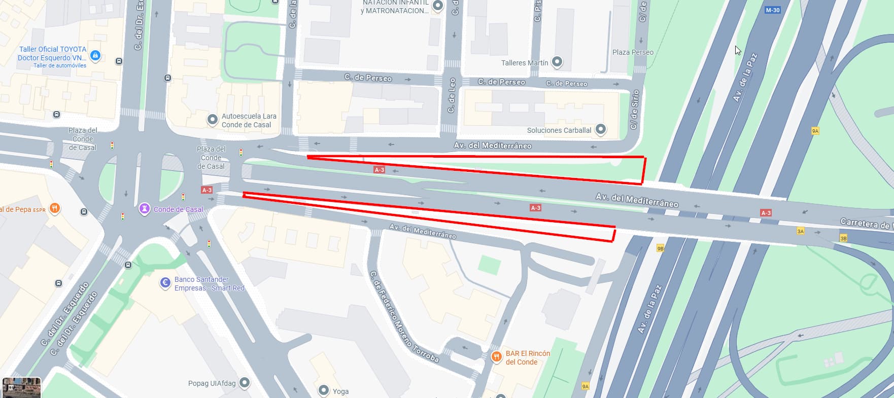 Imagino que investigarían diferentes opciones, pero claro, para poder meter el intercambiador ahí en el centro, hay que ganar espacio en los lados para que los coches puedan pasar por los laterales.