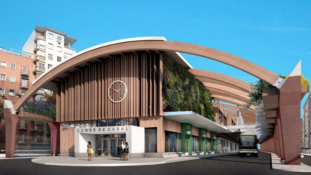 Esto decían los ganadores: entre los principales retos del proyecto destaca la estructura, al apoyarse el intercambiador en parte sobre la nueva estación de línea 11 de Metro y en parte sobre el paso inferior, imposibilitaba los apoyos intermedios, por lo que se ha resuelto mediante arcos de madera laminada de 36 metros de luz apoyados en pilas de hormigón y cimentadas, a su vez, en muros de contención de pilotes de hormigón armado. Otro reto importante ha sido la eficiencia de las instalaciones para conseguir un edificio de consumo casi nulo utilizando la energía fotovoltaica, la geotermia, el intercambio de calor con Metro, la reutilización del agua de lluvia, un sistema de gestión centralizada, una envolvente eficazmente aislada y una correcta distribución espacial óptimamente orientada y tamizada.