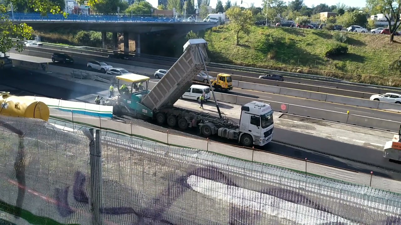 Están empezando con la rampa de salida del puente desde la M607 sentido Paseo de la Castellana.