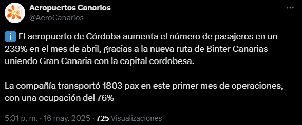 Pues por ahora los vuelos regulares están teniendo bastante éxito. Binter ha alargado su servicio hasta septiembre de 2026 y vueling está teniendo unos buenos datos de ocupación. Al fin esta infraestructura tan infrautilizada en Córdoba está saliendo adelante, y en beneficio de los cordobeses.