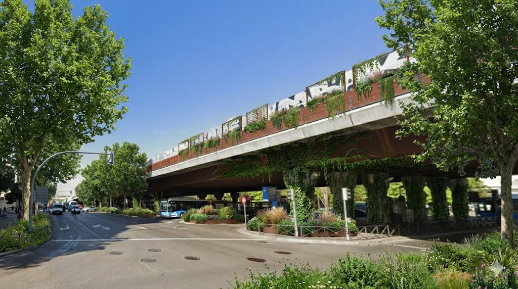 Aunque sea la dirección opuesta al centro con el puente soterrado van a seguir teniendo trafico en superficie pero mucho mebos y eso siemore es bueno, y aunque nunca van a poder meter ahí un nuevo Madrid Rio porque el espacio es el que es, pueden ,acabar ajardinando algo, aunque seaunos pocos árboles, y sobre todo bye bye bicharraco cochista humeante.