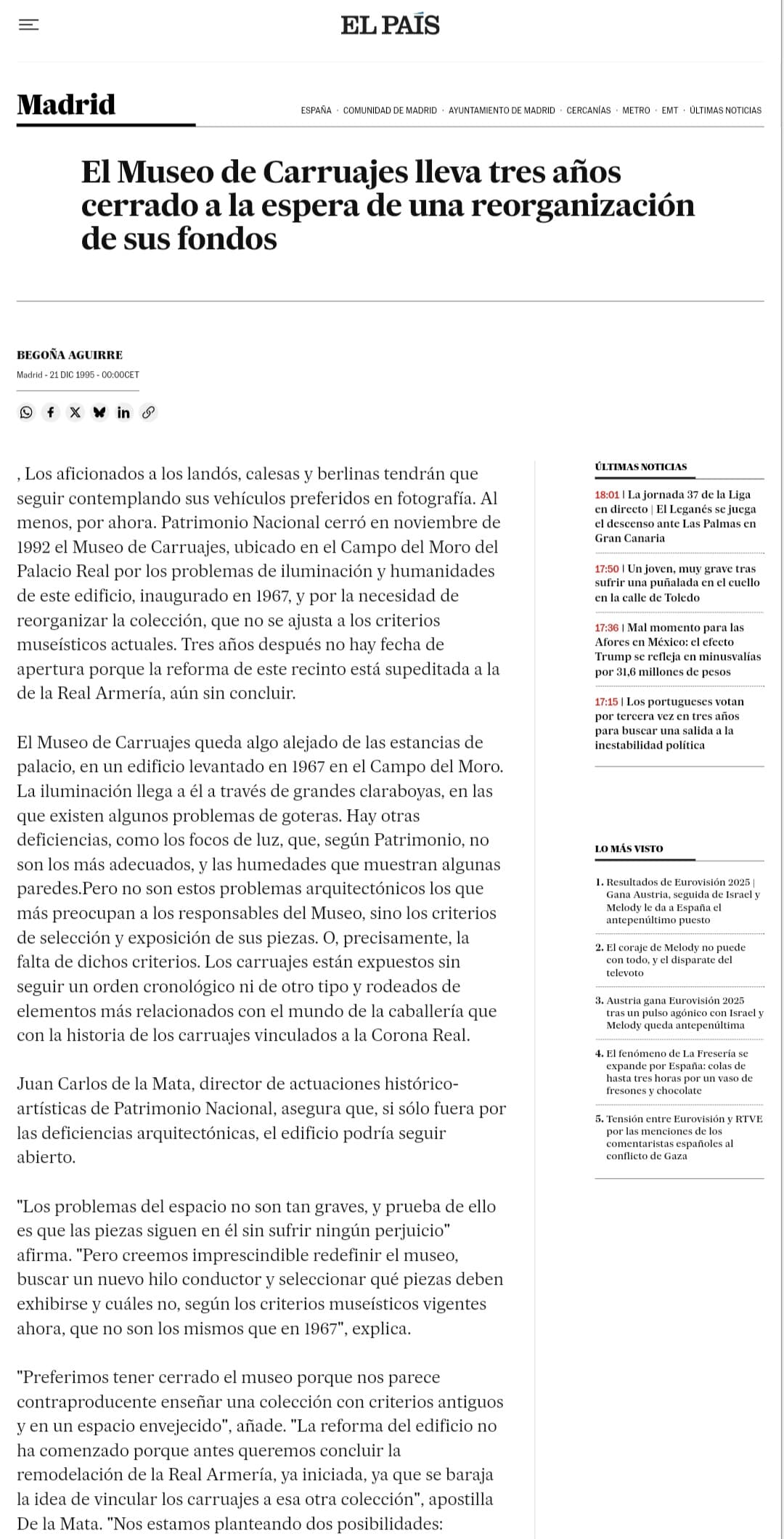 Seguramente acaben haciendo una actualización como con el Museo de Faluas. Según he podido leer en en esta noticia de 1995 que adjunto el principal problema para justificar su cierre era la falta de luz y las humedades (o humanidades segun algunos parrafos, el autocorrector ya haciendo estragos en los 90s) y despues una museografia anticuada “[…]mas propia de un museo de caballeria[…]” que no seguia un criterio cronologíco: