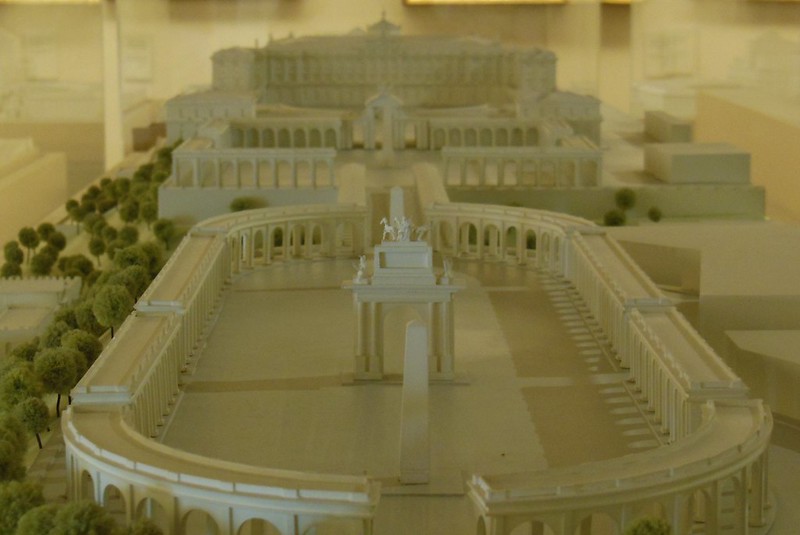 Lo que si haría si fuese un dictador centroasiático sería una arcada monumental con forma de balín en la Plaza de Oriente, siguiendo el diseño del vestíbulo del Teatro Real:
