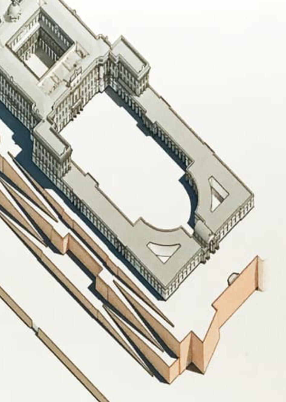 Edito: Releyéndote entiendo que te refieres a ver la plaza desde el exterior, pero eso sería un concepto distinto, aquí tendríamos un acceso por un arco monumental que podría quedar precedido por una escalinata monumental o incluso por un viaducto reubicado, como ideó Silvestre Pérez.