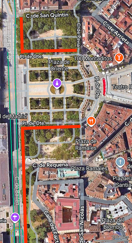 Peco de soñador, pero hacer el pórtico similar al vestíbulo del TR esquivando los árboles, sin tocar el arco oriental y prolongando lo al sur de Bailén, además de ser perfectamente factible, enmarcaría la zona noble y engalanaría el desaguisado de Bailén: