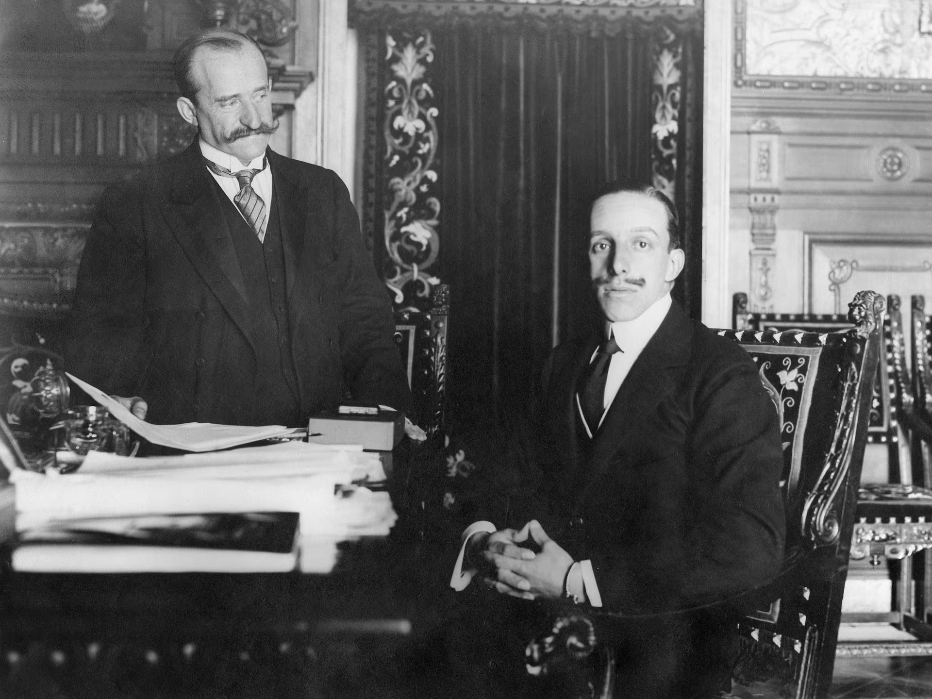 Alfonso XIII con Antonio Maura (se reconoce la sala por las sillas)