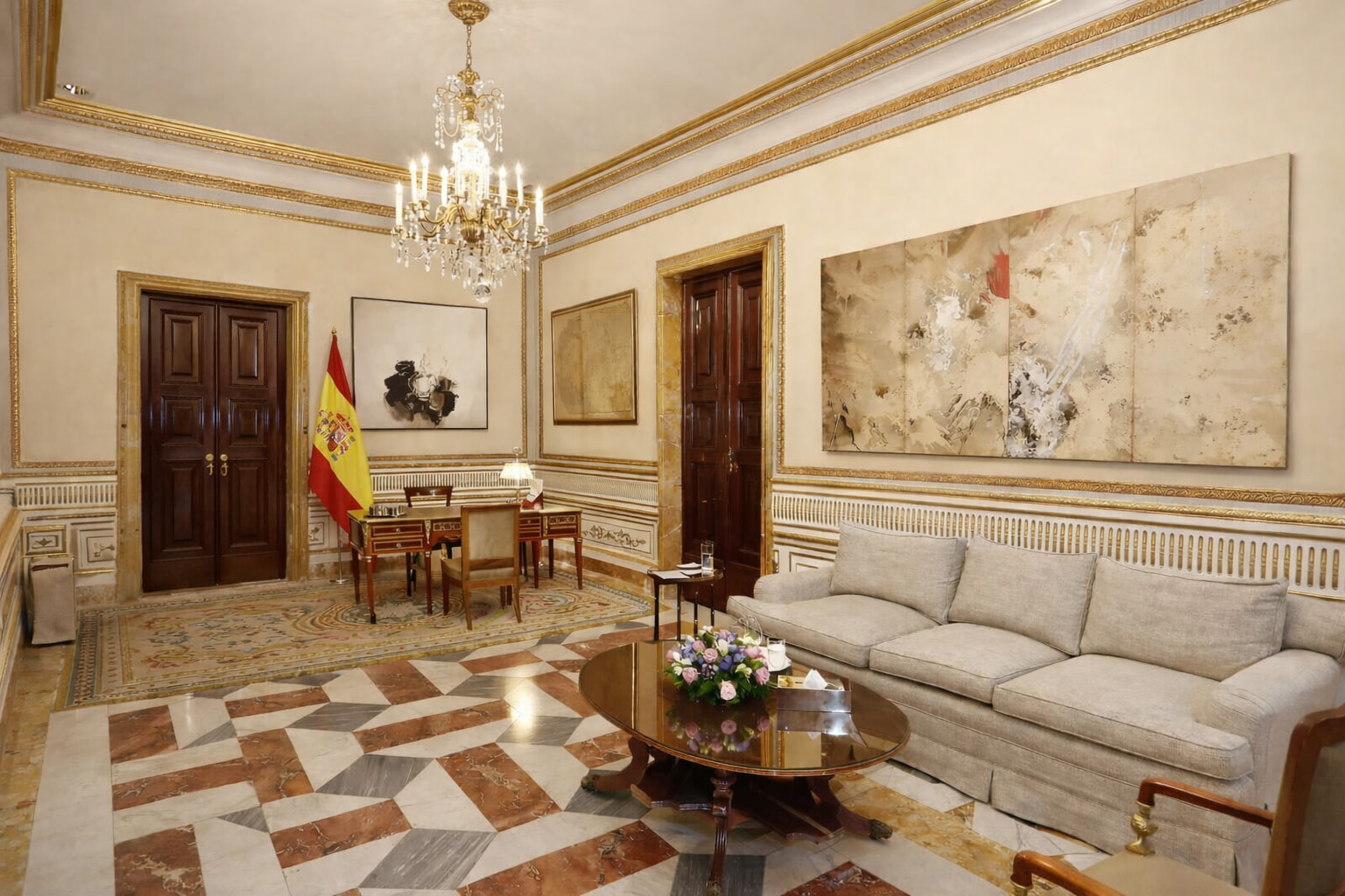 Una excelente aportación. Lo primero me quito el sombrero porque has encontrado fotos donde se vea bastante la Sala del Corbella y no tanto a Su Majestad Felipe VI y el Sr. Embajador de turno. Por cierto que esa decoración para hacerlo despacho debe ser reciente porque la decoración histórica del Corbella en esta: