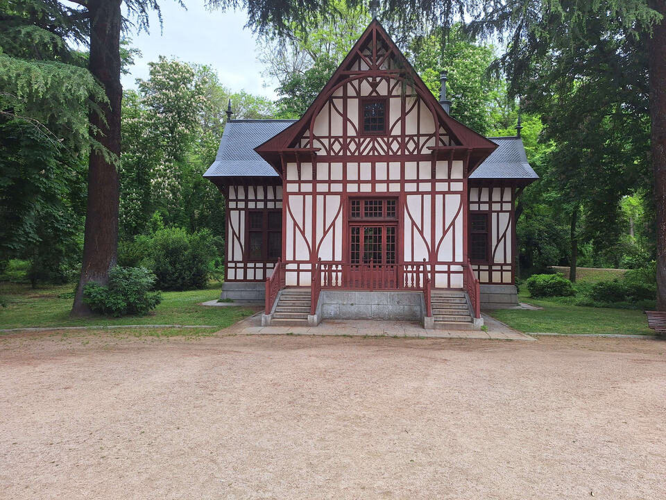 En los jardines de El Campo del Moro se encuentra uno de los llamados caprichos; el Chalet de La Reina. Fue diseñado por el arquitecto Enrique Repullés Segarra en1898 y es un coqueto lugar de descanso diseñado dentro del proyecto global de renovación del parque. Repullés utilizó para su creación un estilo historicista basado en las casas de madera rurales inglesas y alemanas. La construcción tiene una ligera asimetría en los laterales, algo que se interpreta como una influencia del gusto inglés por los jardines con ruinas o estructuras pintorescas y sorpresivas. Se pensó para El Rey Alfonso XII pero su prematura muerte en 1885 hizo que fuera la Reina Regente María Cristina de Habsburgo quien diera su aprobación a los planos y al presupuesto presentados por el arquitecto, y a partir de ese momento, comenzaron las obras, que se extendieron entre febrero de 1898 y marzo de 1899.