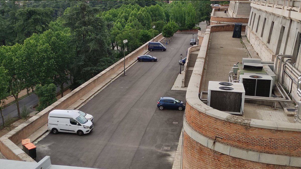 Siguiendo la línea del alto-funcionariado español la superficie del complejo está absolutamente dominada por el asfalto.
