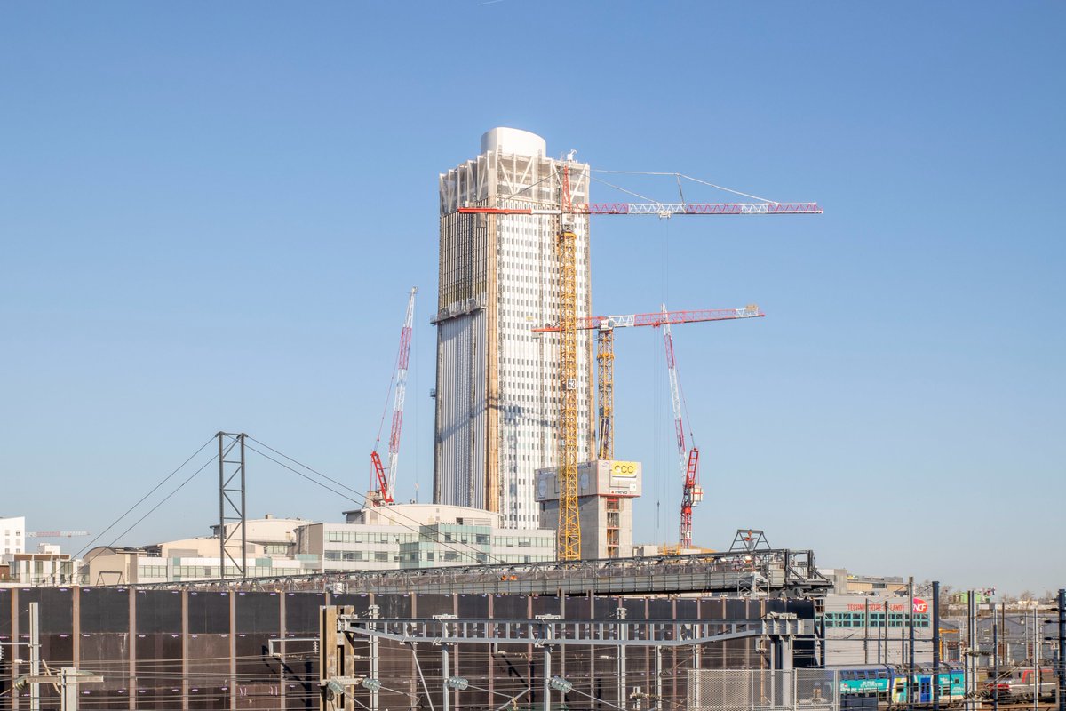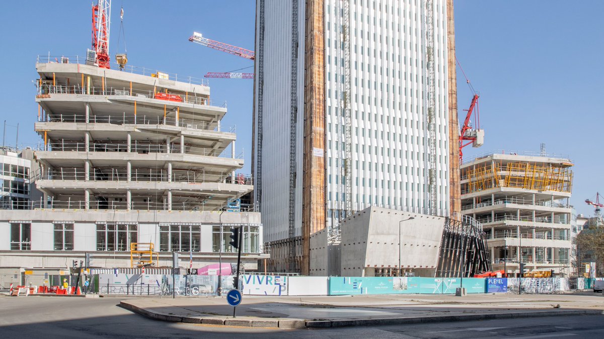 Una representación muestra los edificios residenciales que se completarán cerca de la Estación F.