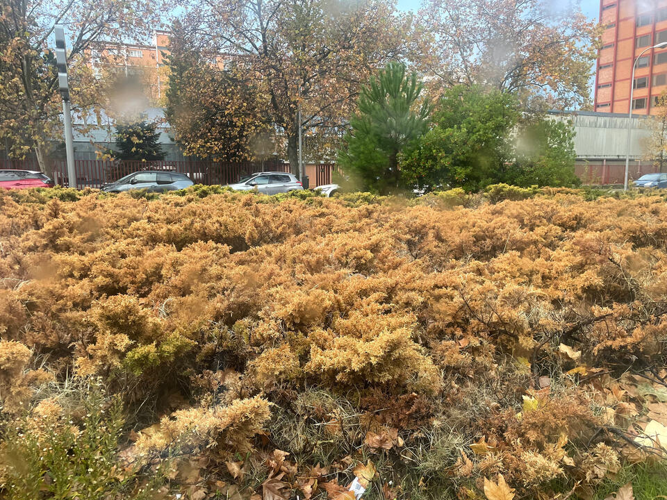 O también este “jardín” hoy luce seco hasta la última hoja de cada planta: