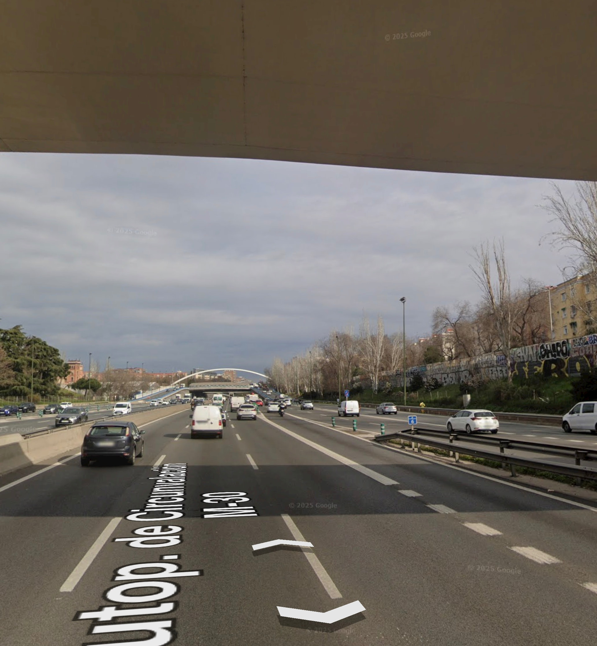 La vía de servicio norte suele estar colapsada, sobre todo por todo el tráfico que recibe desde la A-3 y O’Donnell, de ahí que la salida a la A-2 se apuró lo máximo posible al puente de Ventas para que hubiese holgura en la salida a la calle Alcalá.