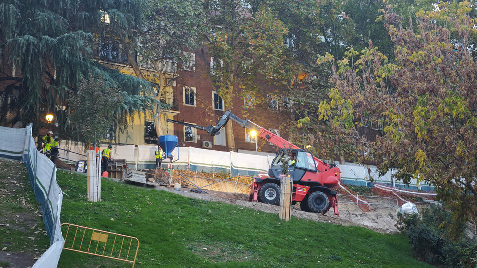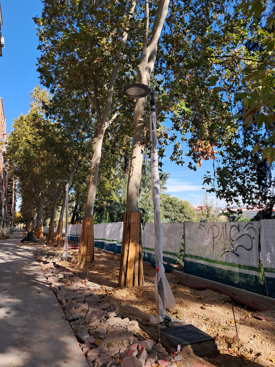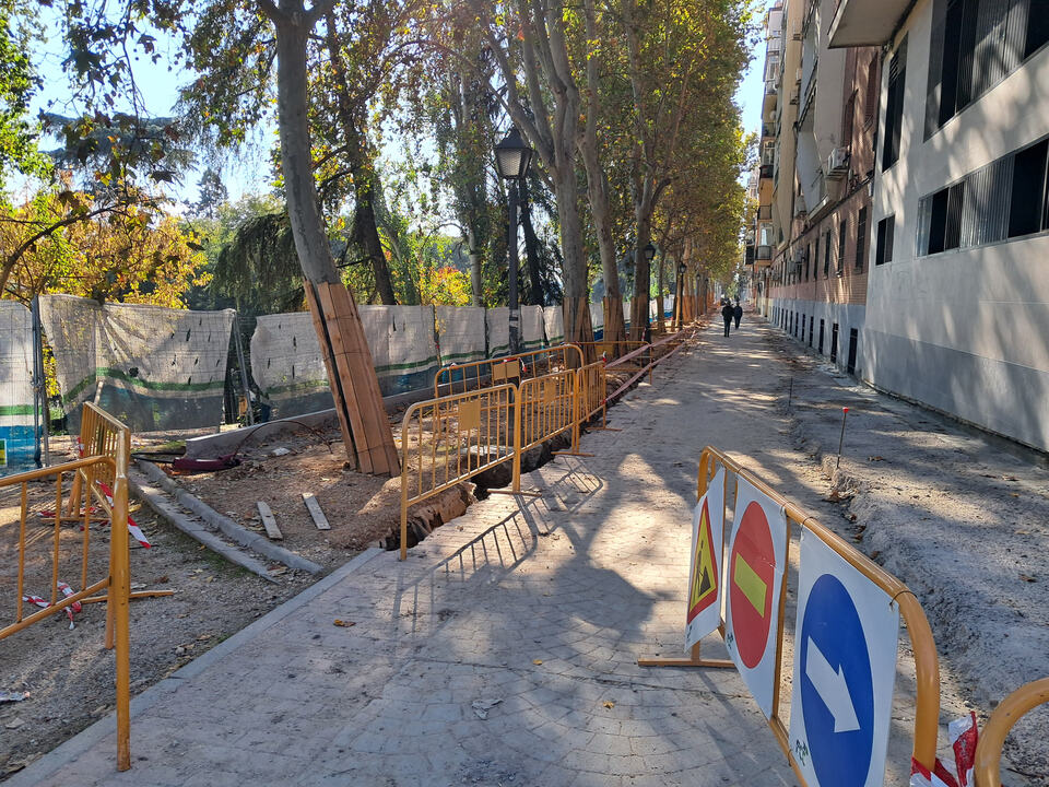 Se está levantando el suelo horroroso de Sancho Dávila. Esta parte de la intervención, cuando se pongan bancos, etc, puede ser de lo mejor para la gente del barrio, un paseo llano con vistas al parque.