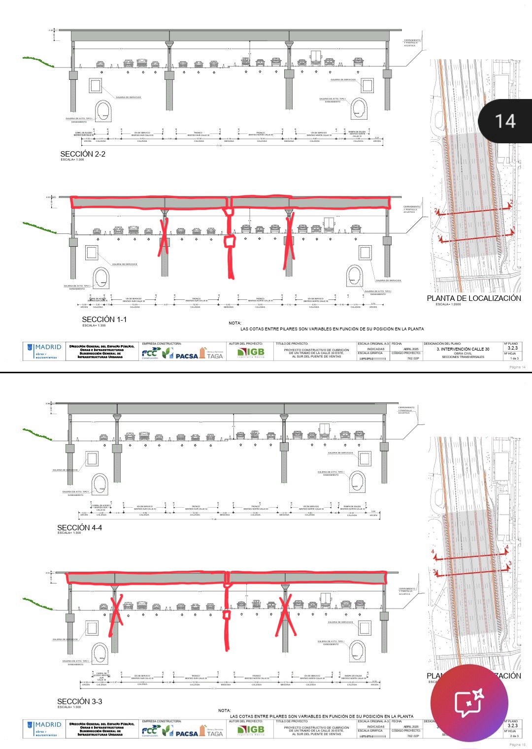 Lo del cubrimiento de Ventas, además de ser una chapuza visual por dejar unas maravillosas vistas desde los taludes a los pilares y al tráfico por no rellenar los taludes, es una chapuza funcional que condiciona imposibilita cualquier mejora en el cuello de botella de la M-30 bajo el puente de Ventas, por no elegir la disposición más óptima de pilares pensando en el futuro.