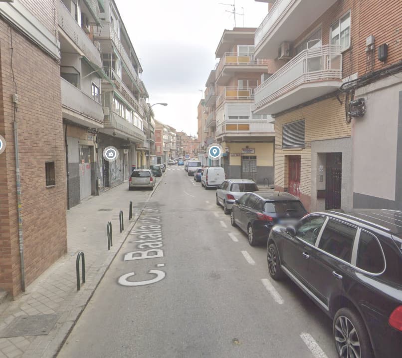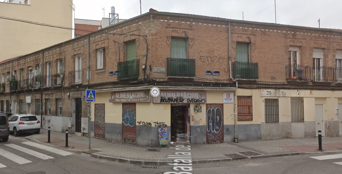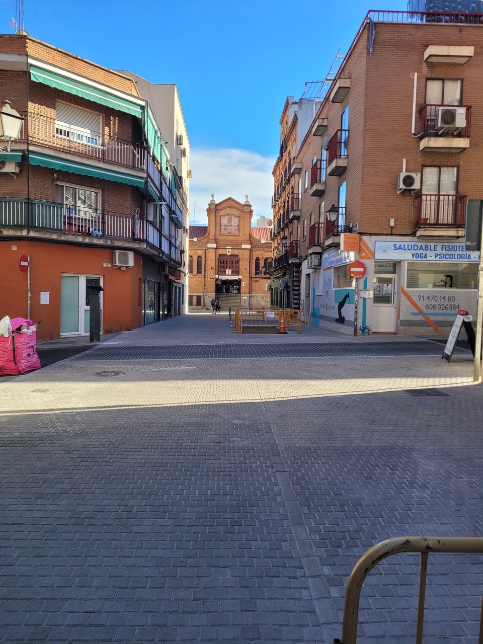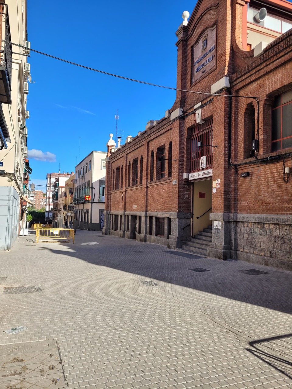 Y más abajo por la calle Batalla de Torrijos, otra de un solo carril y aceras paupérrimas, triste como ella sola. Por desgracia muchos de los locales han sido tapiados y reconvertidos, pero tiene también ejemplos de neomúdejar popular que se podrían poner en valor, y el final de la calle conectaría directamente con la Puerta de los Osos, que da acceso a la Quinta de Vista Alegre.
