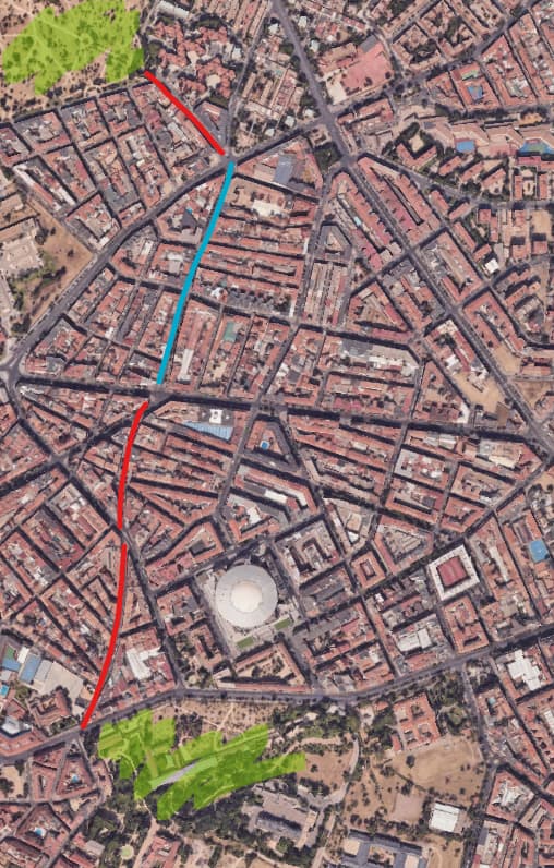 Siempre se habla de crear ejes y tal y tal. Creo que en este caso lo tienen a huevo. Simple, barato, todo calles secundarias y escasa afección al tráfico.