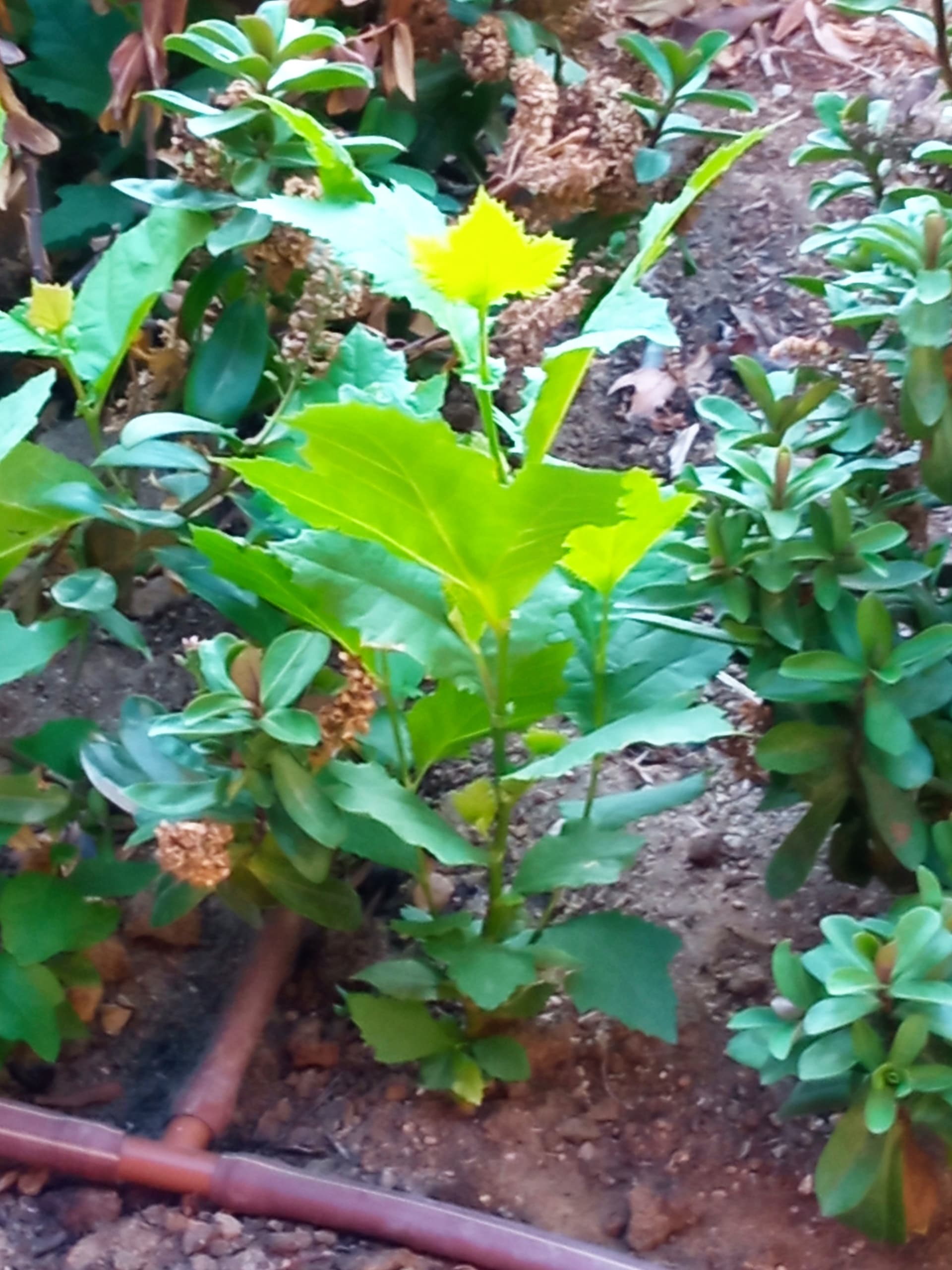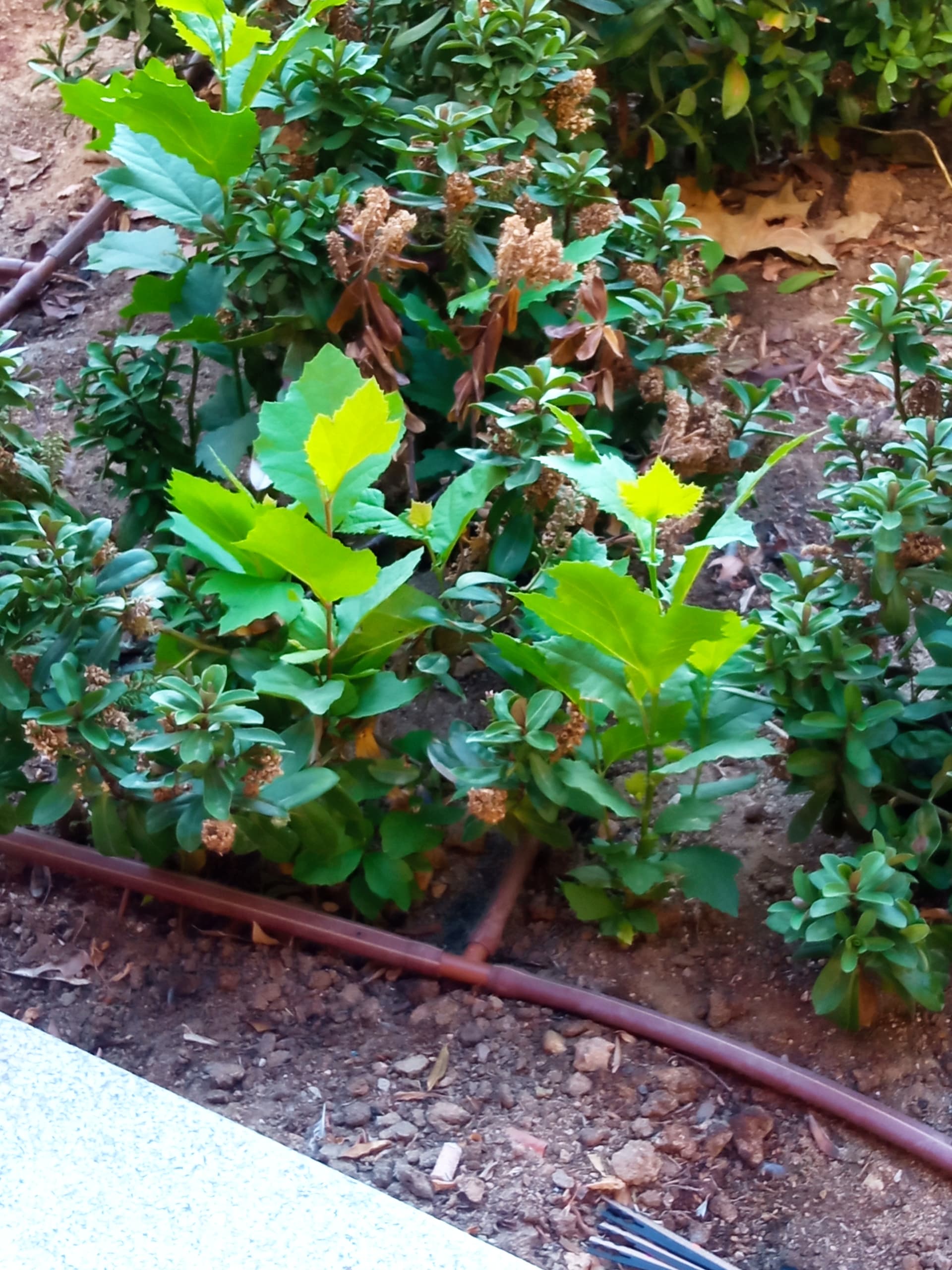 Estoy pensando que al ser un parterre nuevo, que ademas lo terminaron en primavera… bien podría ser también que las semillas de los plátanos cercanos, hayan encontrado un lugar muy proclive para germinar!!!