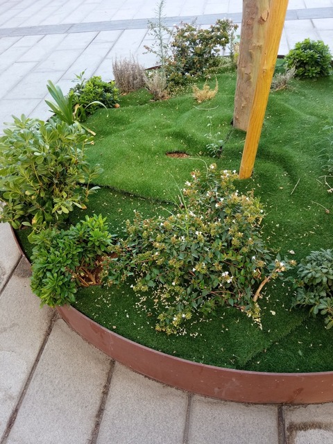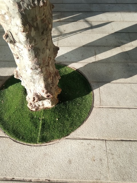 Si ademas les han dejado poner esta guarrearía… En lugar de gastarse en el dinero en esa M podían haber puesto plantitas en como las que hay en el resto de la plaza.