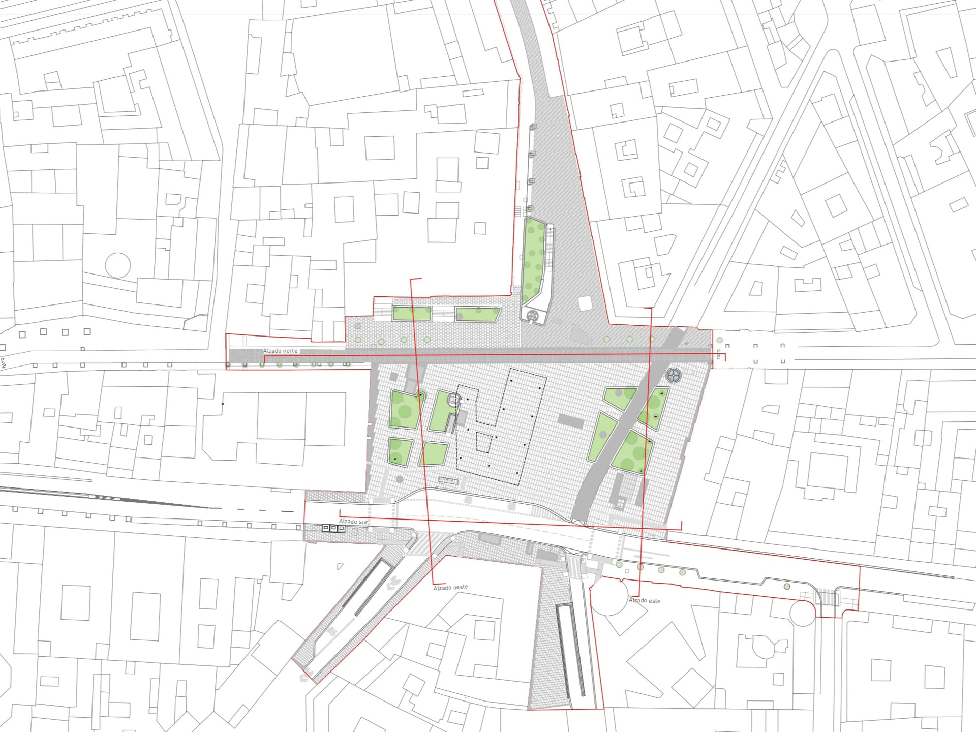 No es el caso, por ser plaza “moderna”, de hace un siglo. Y durante años, más bien espacio desnudo. Ahora es un intercambiador -coche, buses- con un espacio confuso y desarticulado detrás, que apenas es estancial y tampoco acaba de ser de flujo.