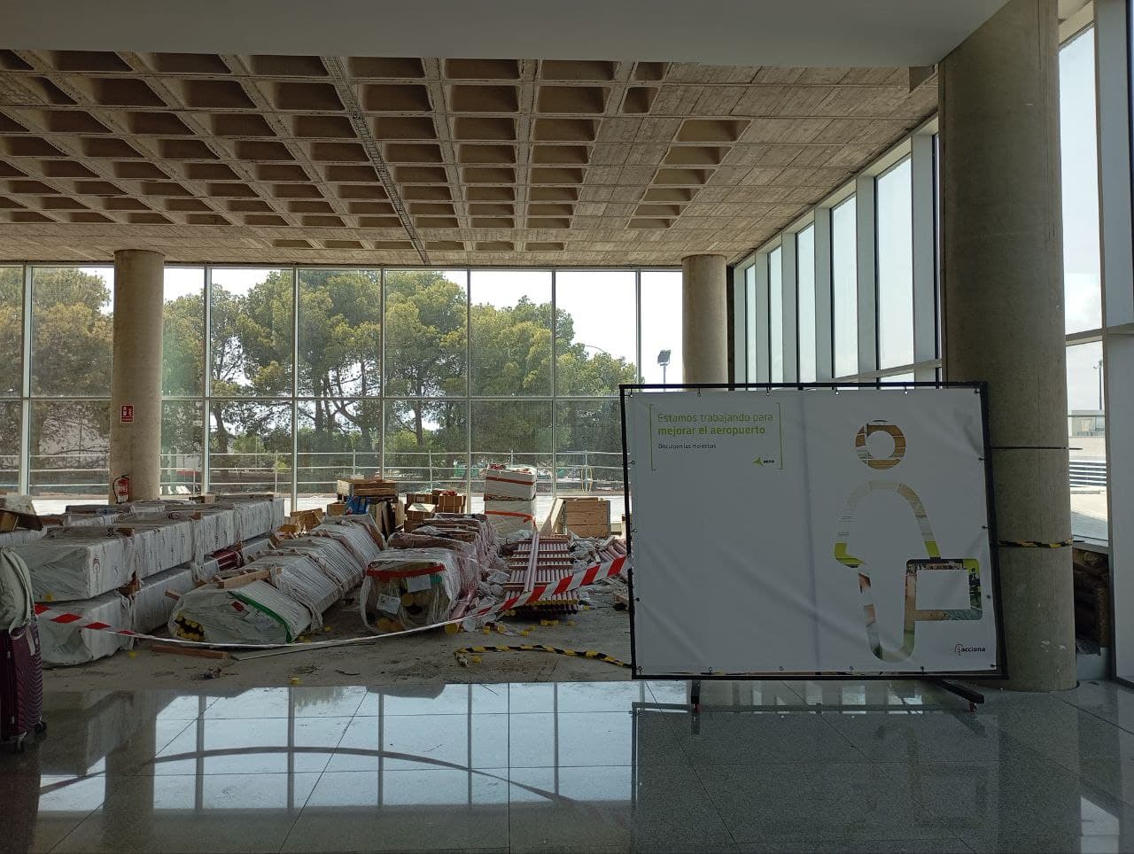El aeropuerto sigue teniendo una infinidad de intervenciones repartidas por todos los sectores. Ahora aprovechando el invierno, empezó en diciembre la segunda fase y Salidas esta patas arribas.