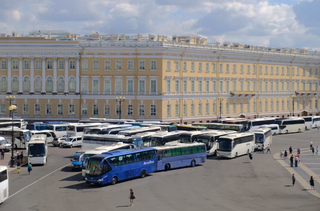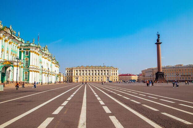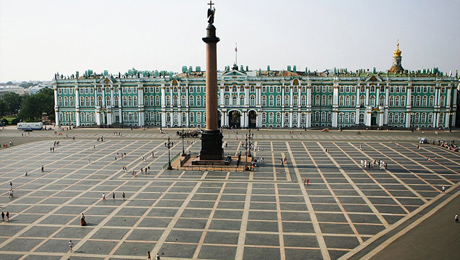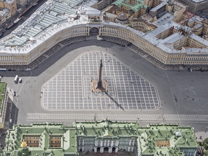 Hoy he visto esta foto de la plaza frente al Palacio de Invierno, el Hermitage, en San Petersburgo, y me he acordado de Sol por el tema de las farolas. El contraste es llamativo.