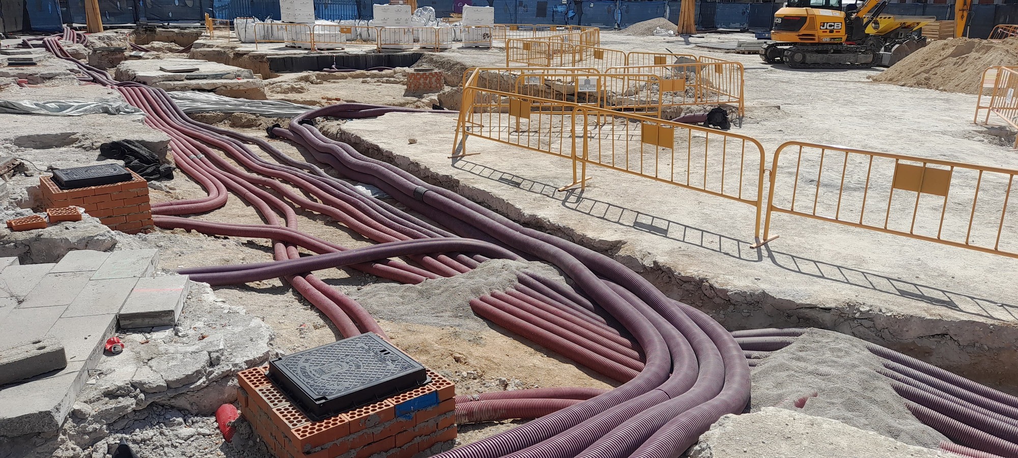 Eso son tapas de registro de alumbrado público. Se ponen cerca de las bases de las farolas…