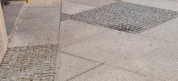 Pues yo lo que vuelvo a ver es una ejecución pésima de nuevo del solado. Poca nivelación previa de la base, sin compactación y nivelación de la capa de arena… Dentro de no mucho volveremos a ver losas rotas y adoquines levantados o algún que otro socavón.