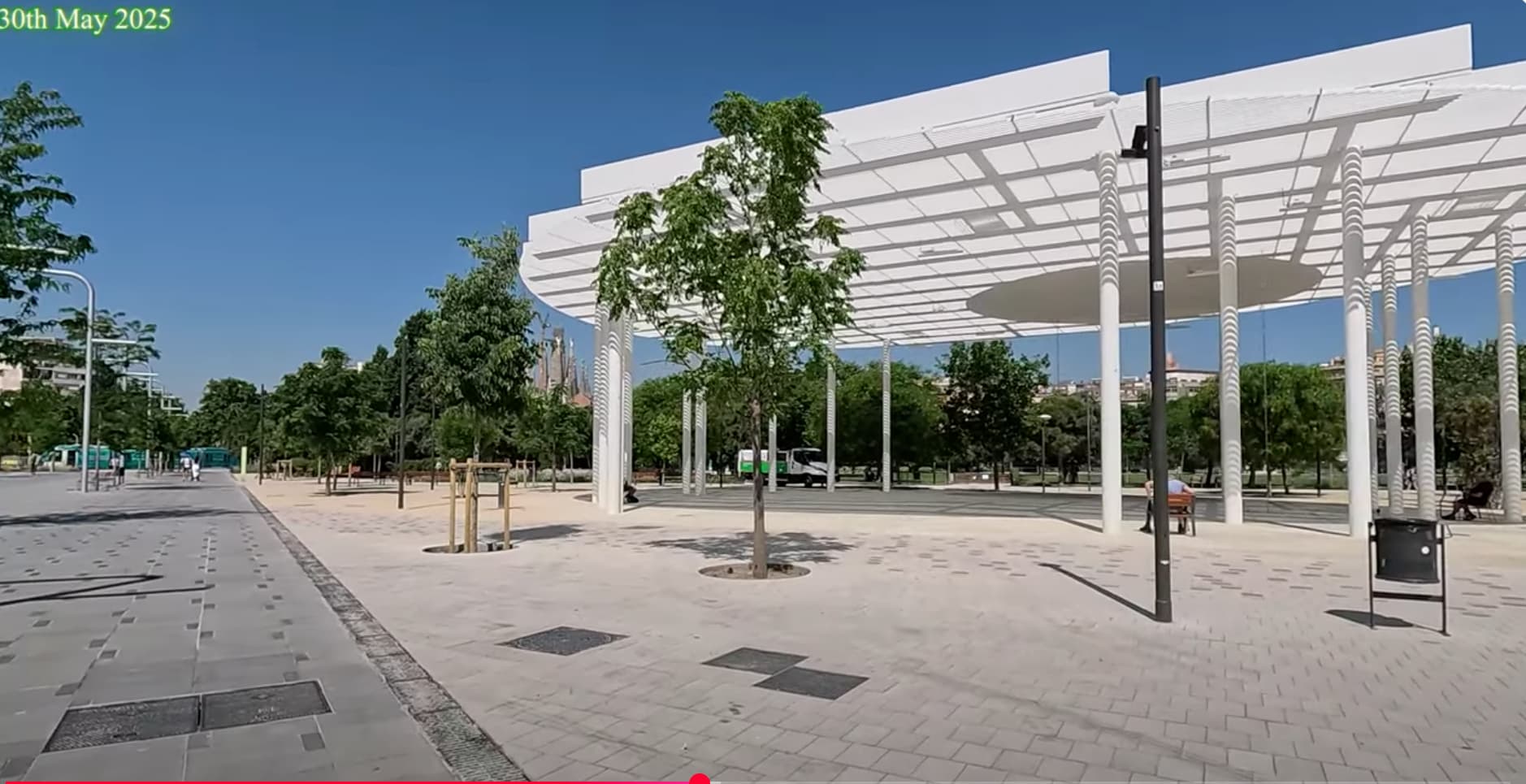 Iba a compararla con la de Piñón i Viaplana, pero creo que la luz que salva la del parque es más grande que la de la de la estación , y además, al ser ésta última más grande y alta las vigas se ven proporcionalmente más ligeras.