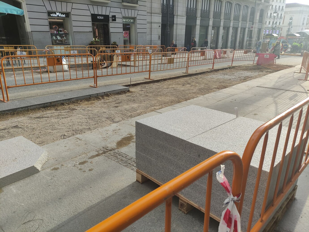 No me refiero a las losas de granito, si no a las losetas abotonadas que hacen de borde en el carril para tráfico, en Sol y en todas las actuaciones que se están haciendo de plataforma única. Si llegan a poner losas de granito de 3cm. hubieran sobrepasado todos los límites de la ineptitud.