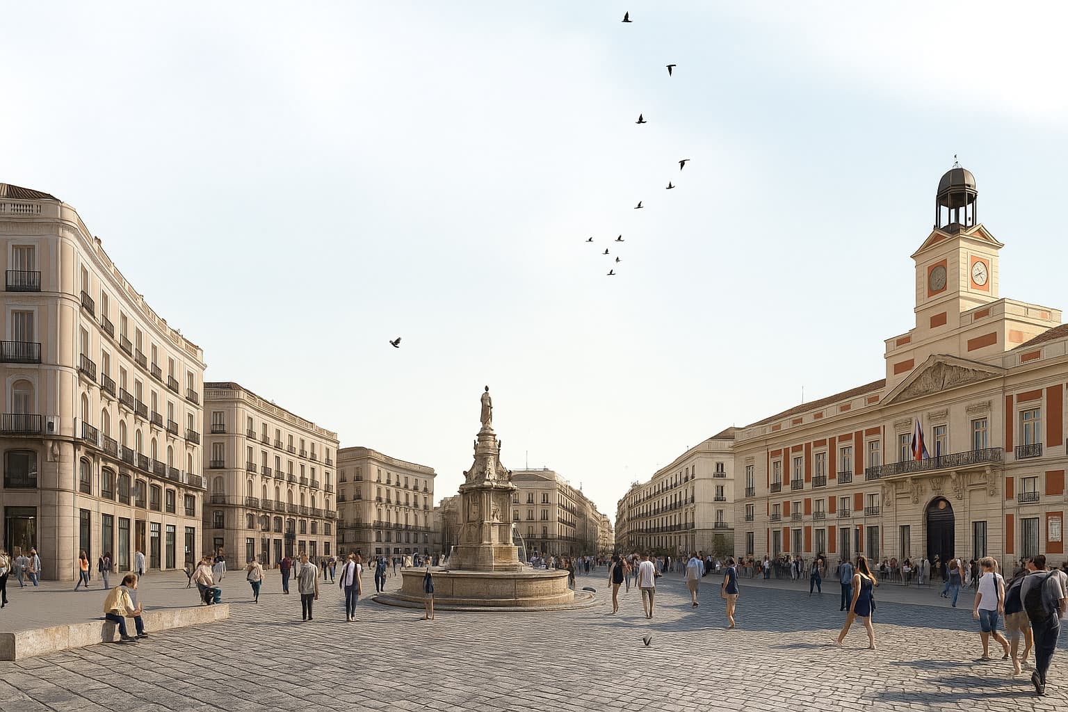No comprendo cómo habiendo estudiado tanto y trabajado en decenas de proyectos no se les ocurre pensar que ese espacio necesitaba sombras. La Puerta del Sol, a determinadas horas, parece el horno andaluz de Córdoba, Andújar, Écija o Sevilla, considerados los puntos más calurosos de España. A los diseñadores no se les ocurrió colocar nada verde que sirviera para dar sombra y color a nuestras vidas. La plaza es una variante de esa moda del siglo XX llamada arquitectura brutalista que consiste en construir con hormigón, un buen elemento gris, aburrido, soso, y no resalta la propia belleza del kilómetro cero. A este caminante le gusta la arquitectura y no entiende esa tendencia que carece de personalidad en beneficio de la utilidad. Hace algunos años que a los técnicos les dio por ahogar los árboles, y cientos, me atrevo a decir miles, fueron encerrados en cemento que parecía que los ahogaba. Estoy seguro que si a los ciudadanos nos hubieran propuesto ideas tendríamos un Sol más vivo, con más color y más plaza. Los sabios del ladrillo están encerrados en sus propias formas y no tienen en cuenta que esa plaza es un lugar con historia, para el encuentro y con el sol que caía era una plaza prohibida.