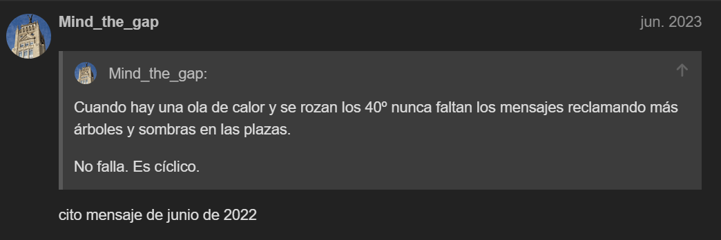 “Ejjjjjjj que no sé diferenciar los usos de los espacios urbanos, necesito poner árboles sin orden ni concierto y como es un discurso fácil de sostener (a la vez que falaz) me paseo por el foro haciendo gracietas.”