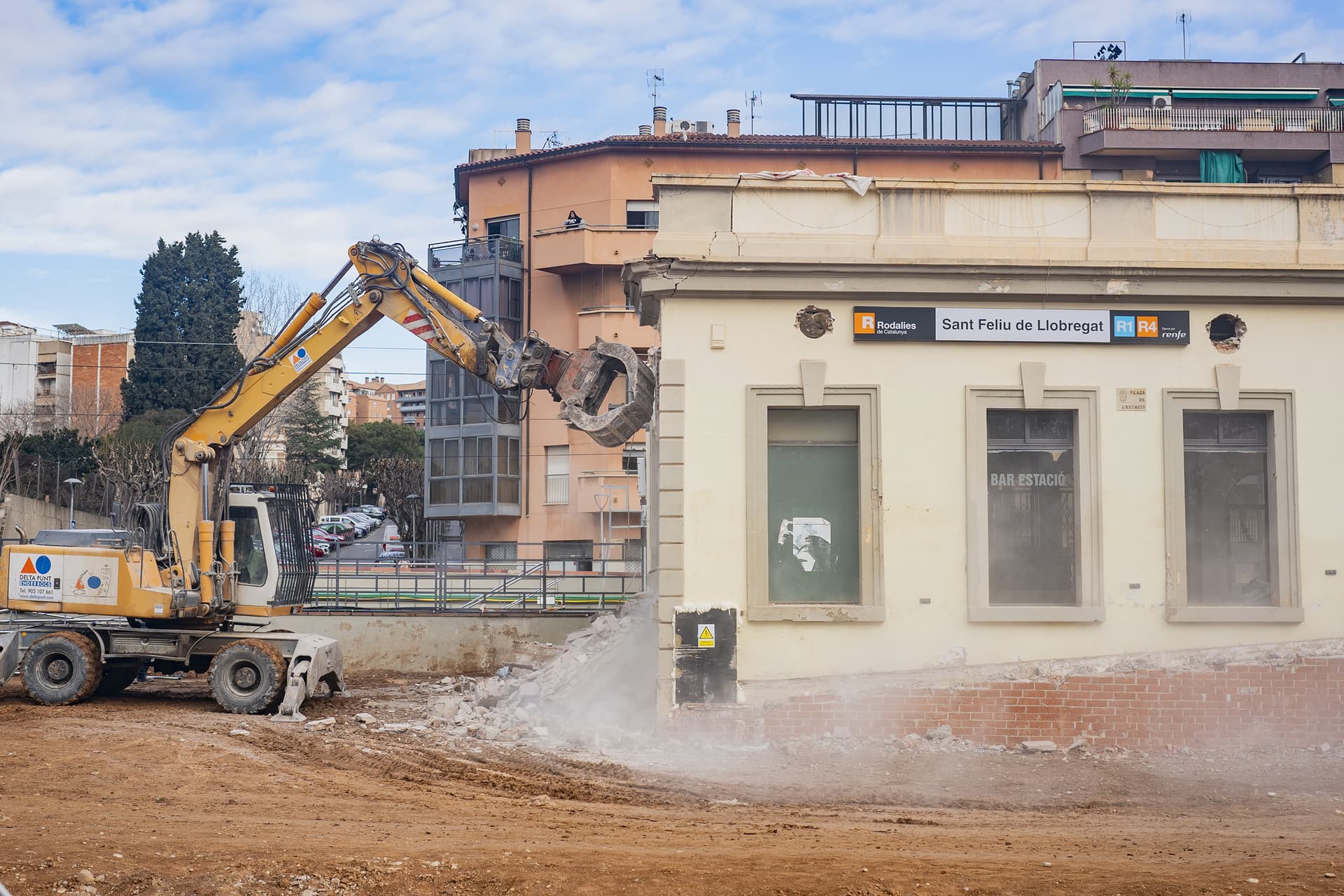 La estación de Sant Feliu de Llobregat ya es parte de la historia. Los operarios del administrador de infraestructuras ferroviarias (Adif) empezaron este jueves a derribar la estructura del que estaba considerado uno de los edificios de pasajeros más antiguos de España, testigo de la transformación urbanística y económica de la capital del Baix Llobregat durante 169 años.