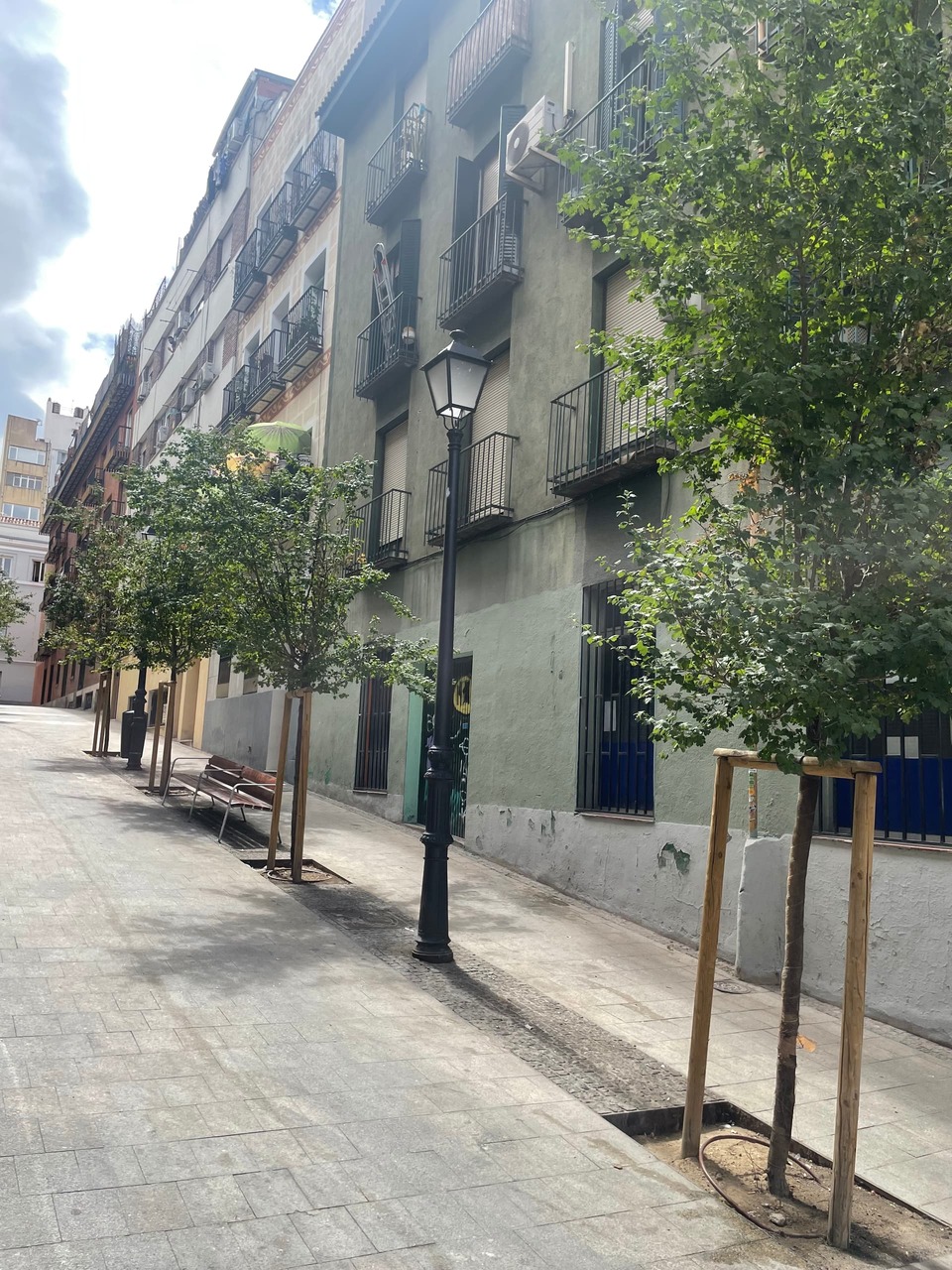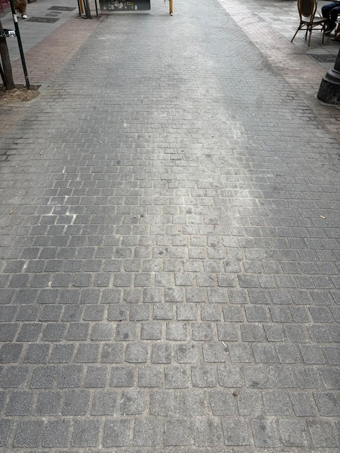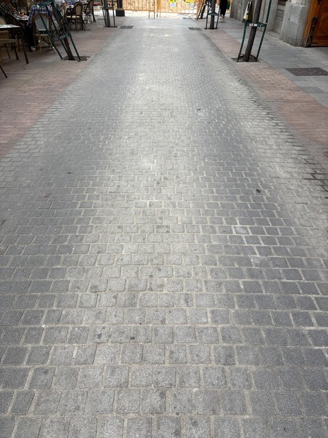Fotos de lo hecho en Huertas/Matute. En las fotos creo que no se aprecia, pero se ha hecho con forma convexa con pendiente hacia los extremos. Los adoquines se ven bastante bien colocados y dan sensación de acabado muy firme. De momento están aguantando bien el paso de tráfico.