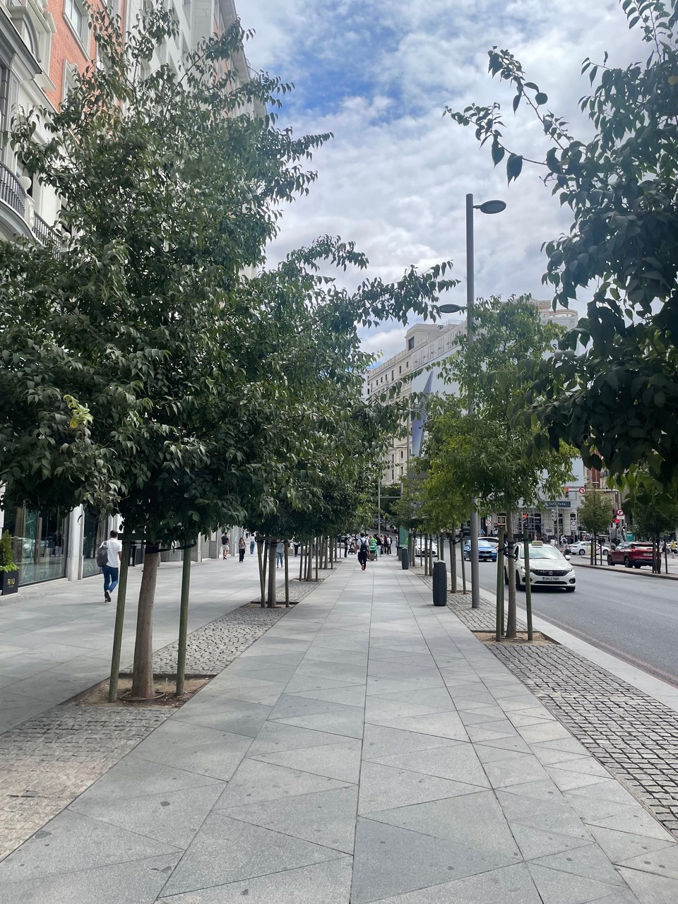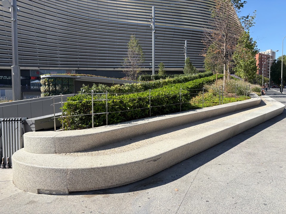 Hoy he visto esto en la zona exterior del Bernabéu. Podría servir como solución para la falsa escalera de Las Cortes. Modificando la anchura del peldañeado para introducir vegetación