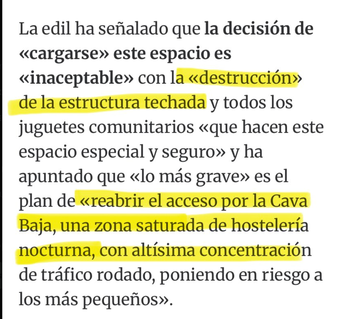 ”la estructura techada y todos los juguetes comunitarios que hacen este espacio especial y seguro” a los que hace referencia Lucía Lois eso es para verlo…. parece zona de guerra ….con tejado de auralita, juguetes por el techo, es inhumano… eso se tiene que tirar y dárselo al parque.