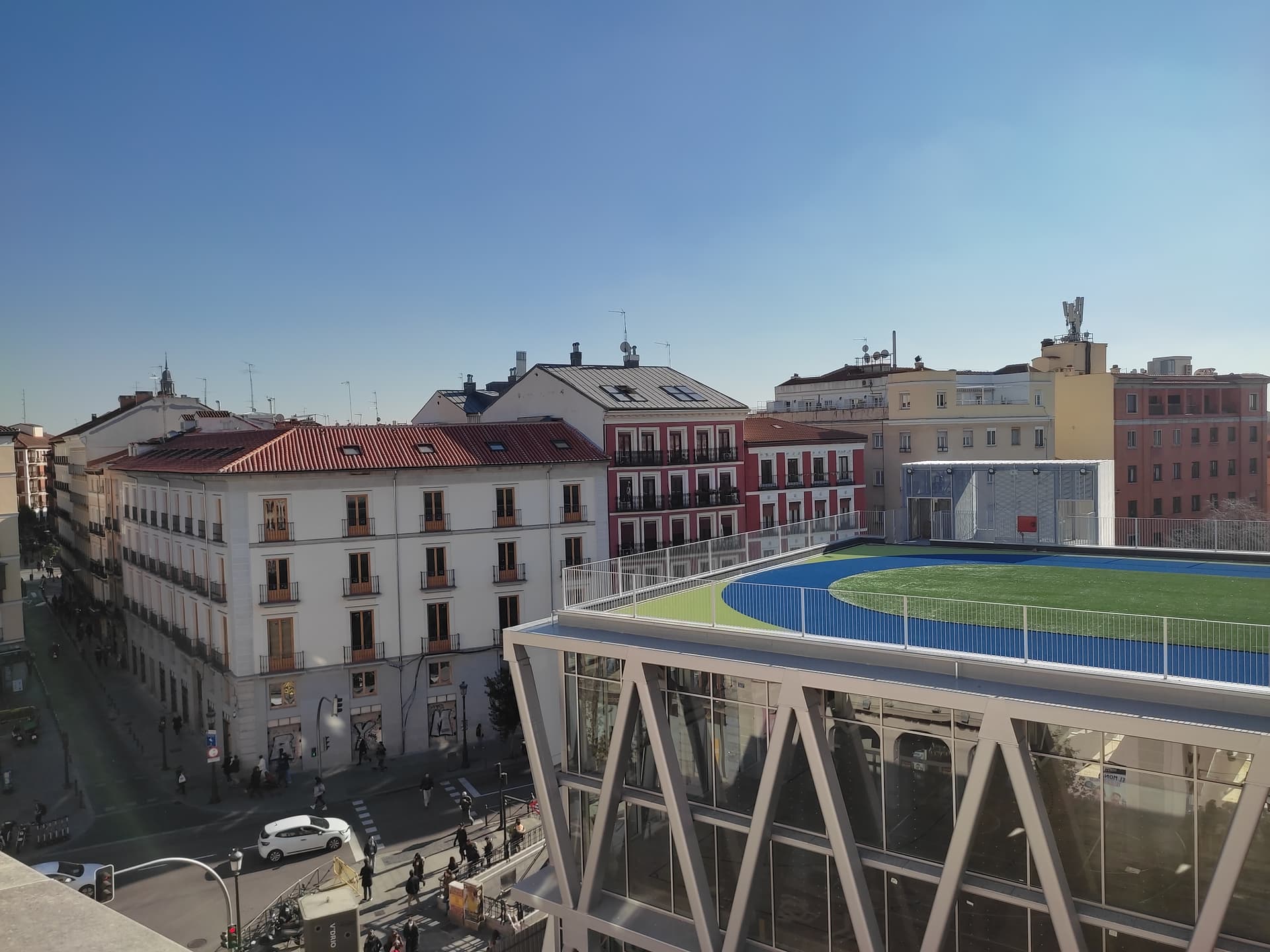Visto desde arriba el centro deportivo de La Cebada no sangran tanto los ojos. Pero vamos que tampoco me voy a quejar teniendo la catedral de La Almudena que es lo más horrible de Madrid.